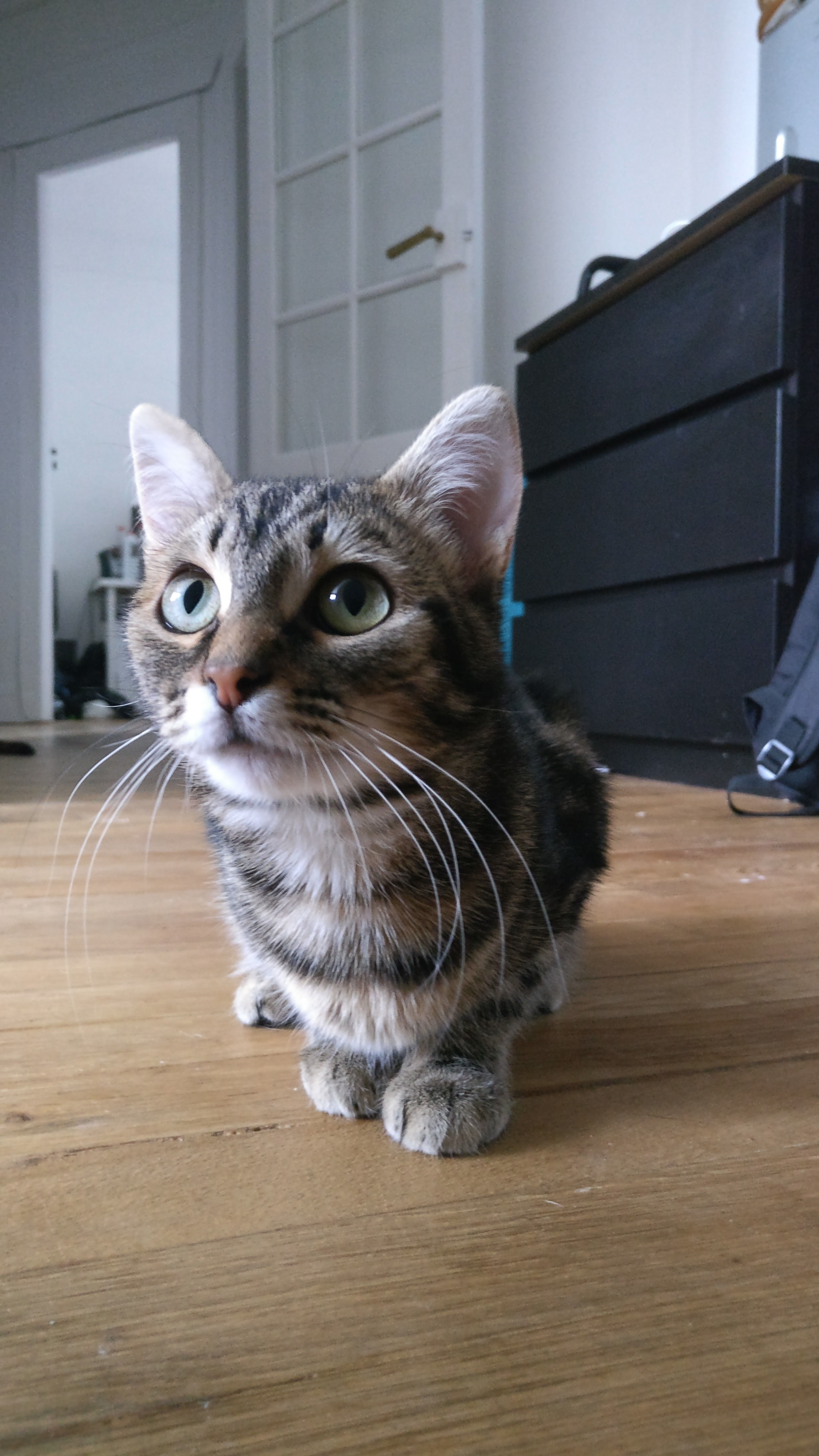 Caractère : Isia est une petite chatonne absolument adorable, un peu timide Mais dès qu’elle sera en confiance elle viendra très régulièrement vous réclamer beaucoup de caresses et de gratouilles en miaulant. Elle est d’ailleurs bavarde, mais toujours pour de bonnes raisons (une litière sale, une  gamelle vide…) Elle sait maintenant monter sur les genoux et comme elle y prend goût, il devient  dur de la faire bouger !Elle s’est aussi très vite habituée à sa famille d’accueil et à leur chatte Poppy, qui est devenue sa copine de jeux.