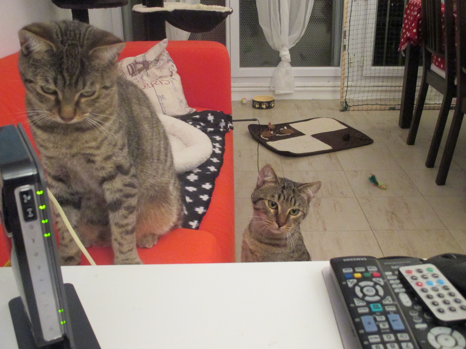 On aime beaucoup aussi le canapé, on passe des heures à y dormir et à y jouer ensemble.