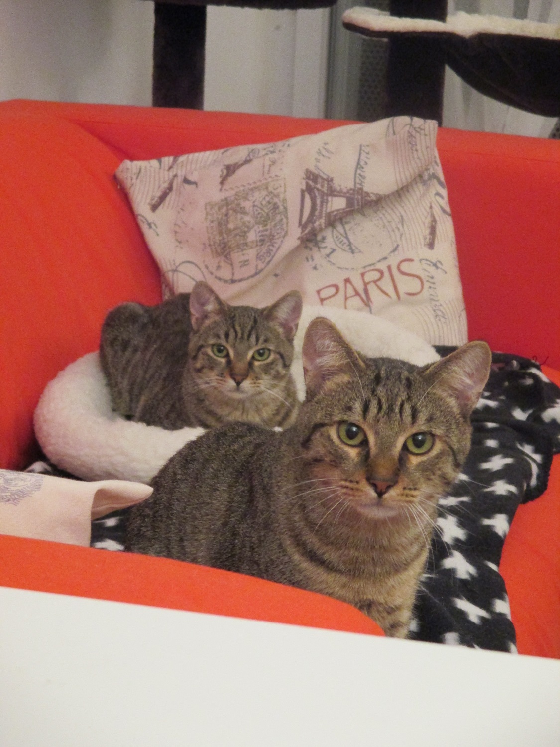C’est une toute nouvelle vie à trois et il faut s’acclimater au nouvel environnement et à notre nouvelle humaine attitrée, mais nous sommes heureux et choyés. Elle nous a laissé cinq jours pendant noël, mais on a vite compris qu’elle ne nous avait pas abandonné quand une autre humaine est venue régulièrement s’occuper de nous. Du coup, on ne lui a pas fait la tête lorsqu’elle est rentrée.