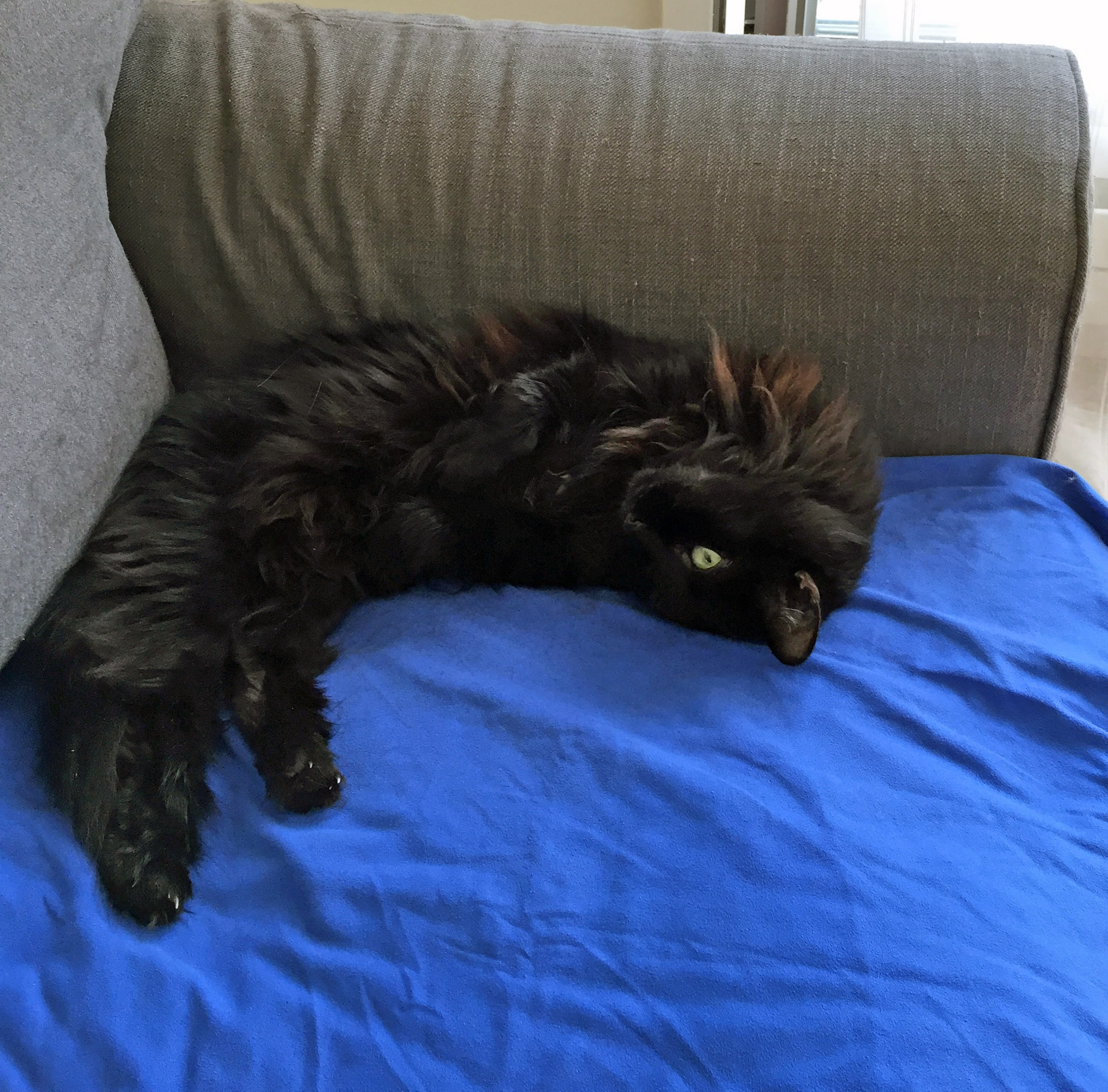 Caractéristiques physiques : Belle minette à poils longs noirs, et aux yeux verts. Testée FeLV/ FIV négatif, identifiée, stérilisée, vaccinée. Choupette présente de l’hypertension et un léger souci cardiaque, qui nécessite un traitement journalier. Petit gabarit