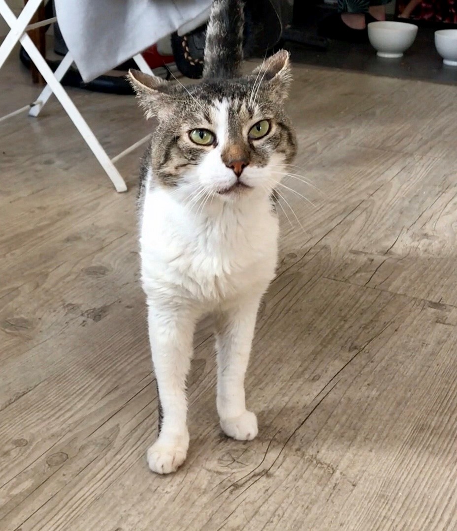 Histoire : Poupy a fait l’objet d’un sauvetage en mars car son humaine est décédée. Il a été récupéré avec des blessures. L’association l’a pris ainsi, fait soigner et il a depuis repris santé et confiance en l’humain chez sa famille d’accueil.