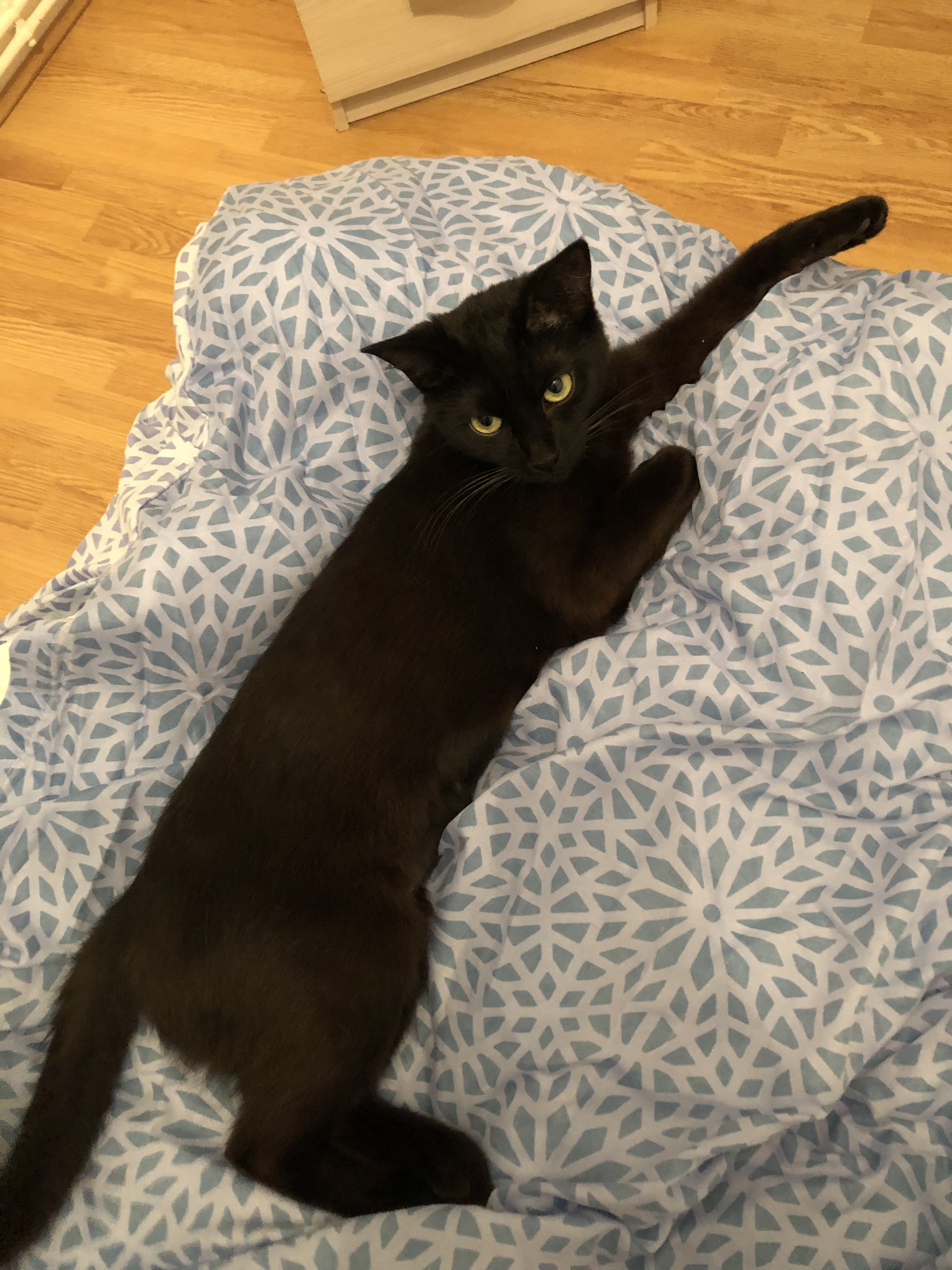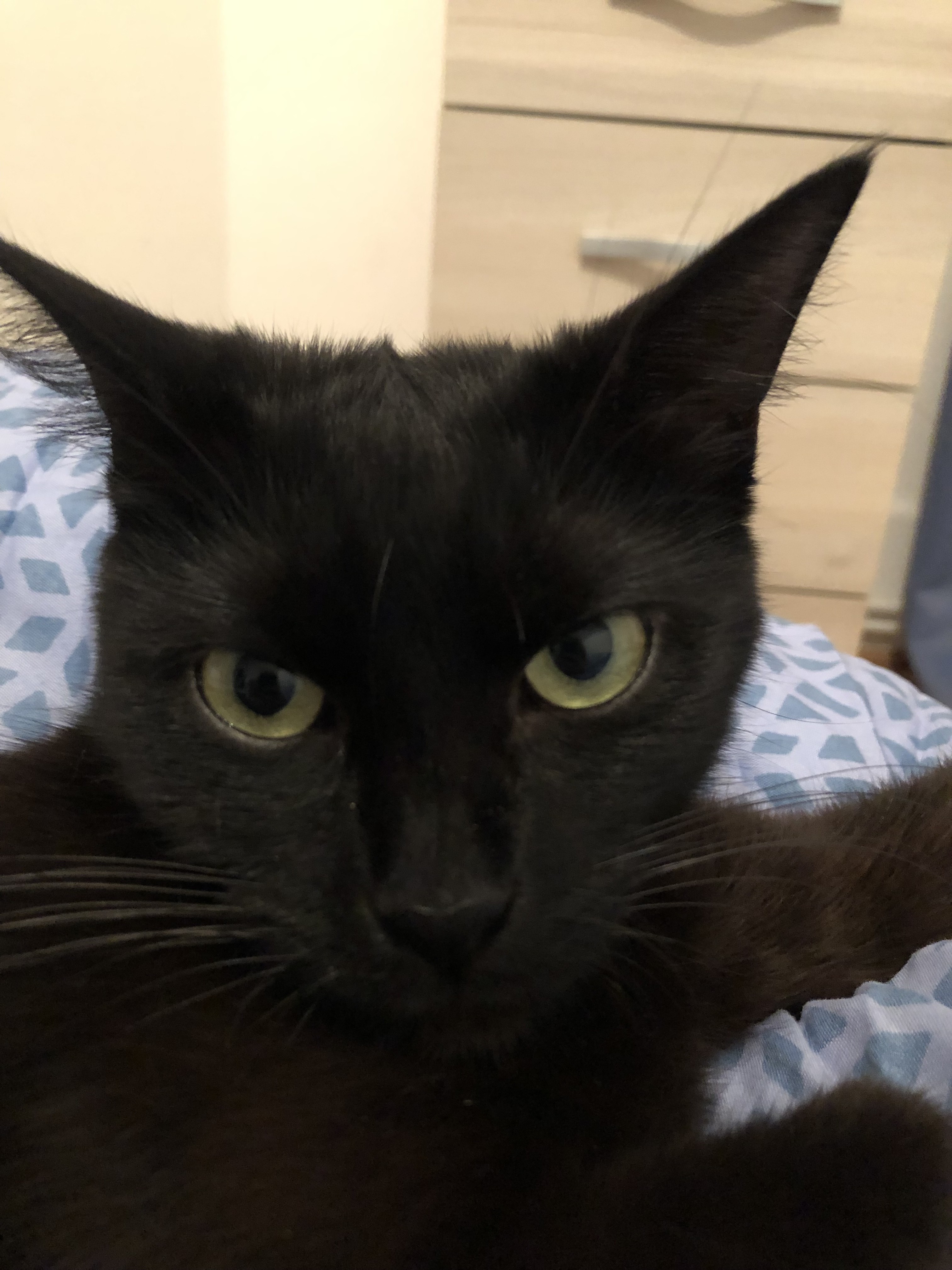 Caractéristiques physiques : Jolie robe noire. Testée FeLV/FIV négatif, vaccinée, stérilisée et identifiée par une puce électronique.