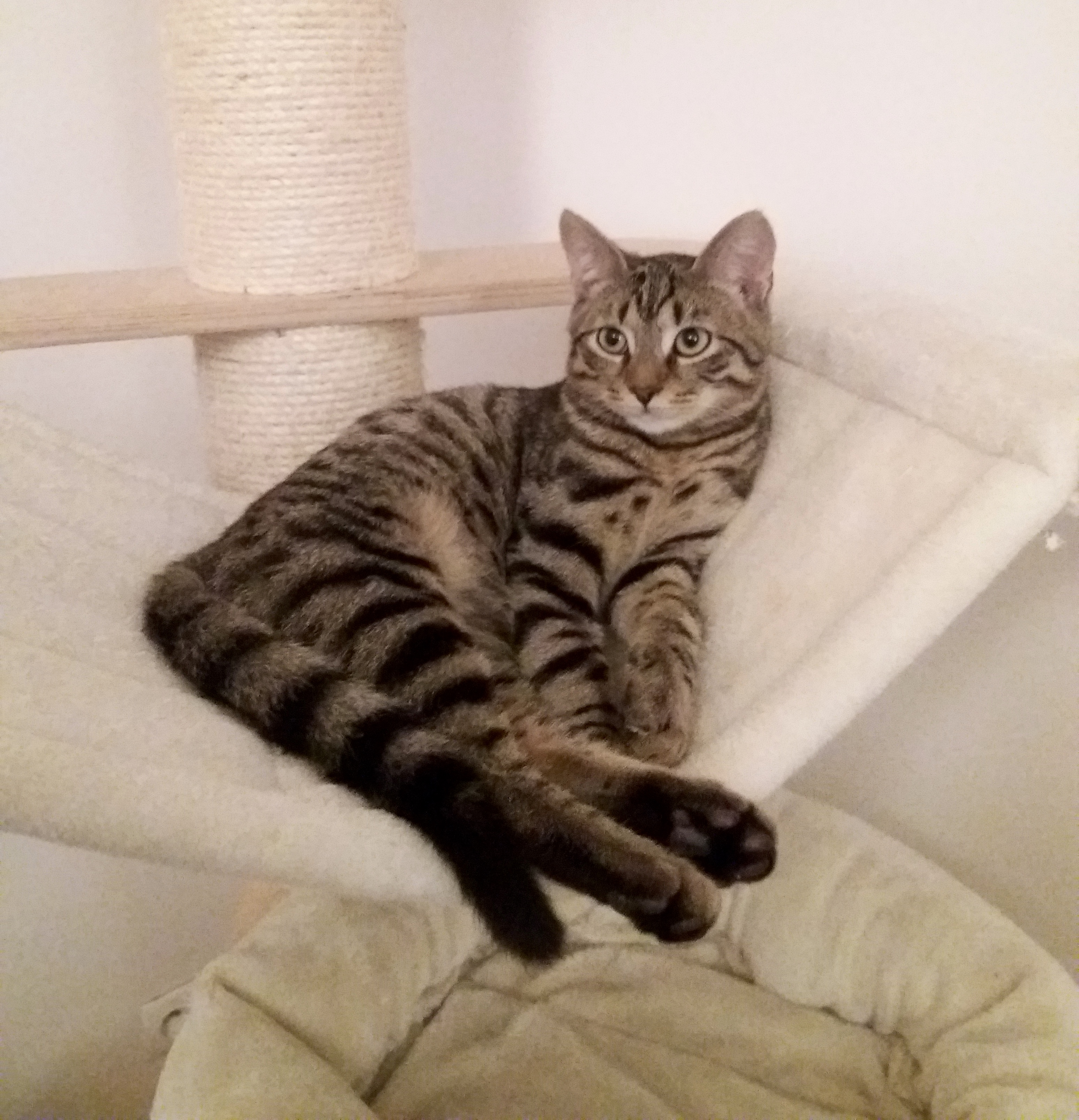 Caractéristiques physiques : Beau chaton tigré. Testé FeLV/ FIV négatif, identifié, vacciné. Sera stérilisé vers l’âge de 6 mois.
