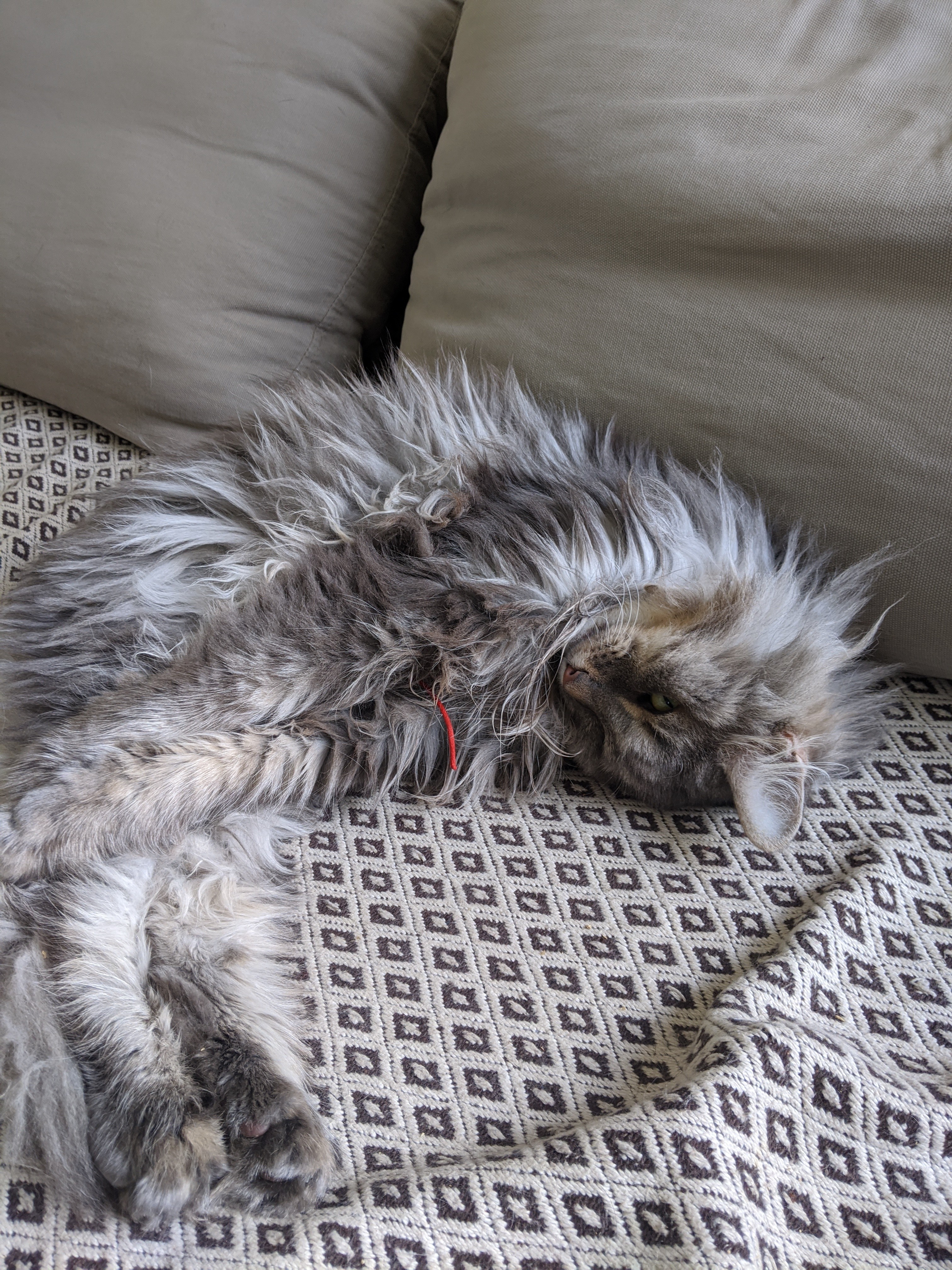 Quelques conseils pour prendre soin de Blake : c’est idéal si vous pouvez passer beaucoup de temps avec lui, il en sera ravi et vous le rendra bien ! Il adore jouer, même avec de nouvelles personnes, vous vous amuserez beaucoup avec lui car il est très curieux. Il peut avoir tendance à être un peu stressé par les changements mais est extrêmement bien élevé et propre. C’est un chat à poils longs mais il n’aime pas trop être peigné, il faut donc s’en occuper régulièrement. Blake a une malformation du diaphragme.