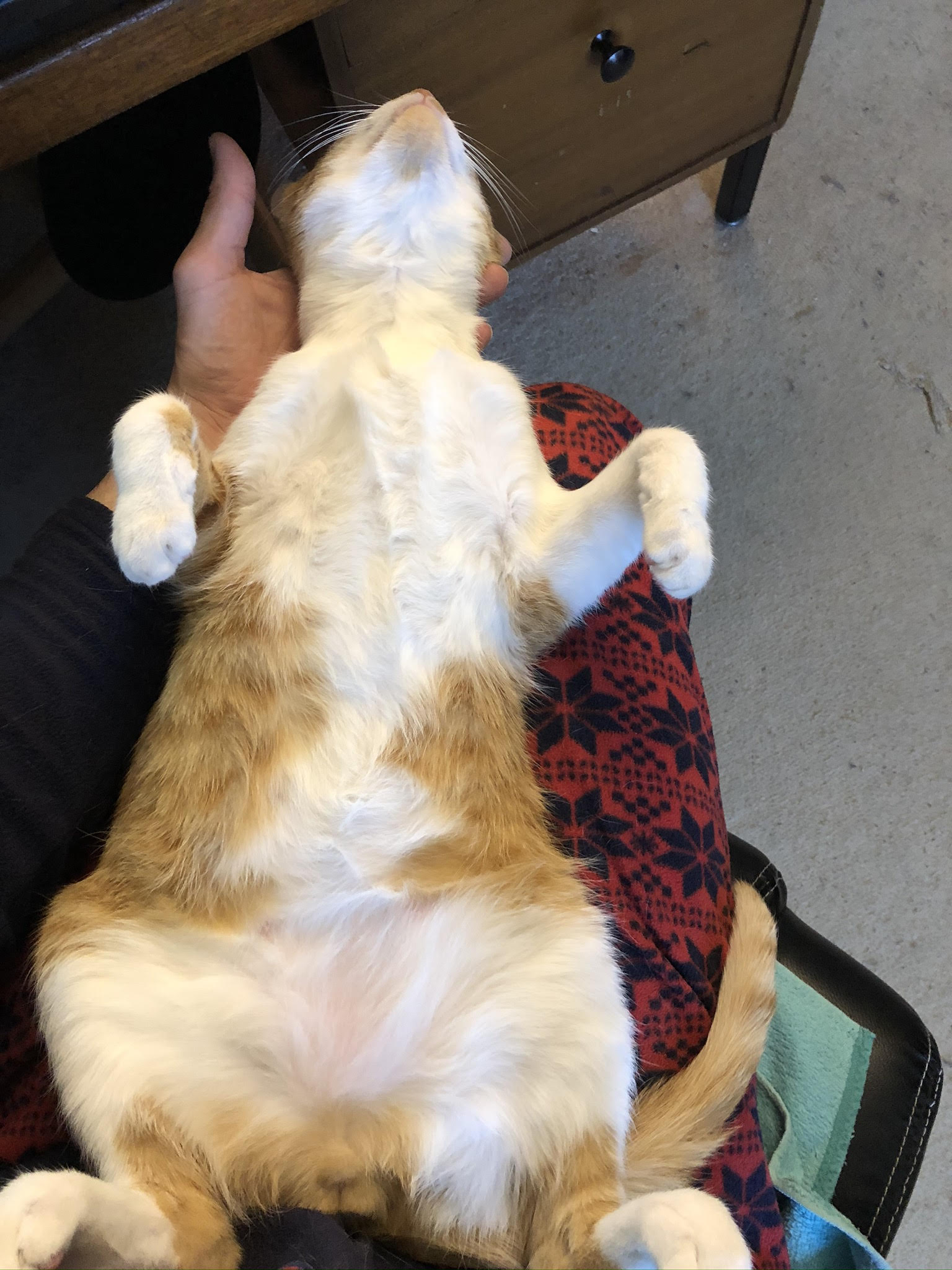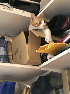 Yazoo (anciennement Potiron), adopté en octobre 2019, est un petit matou espiègle, joueur, charmeur et infatigablement câlin.