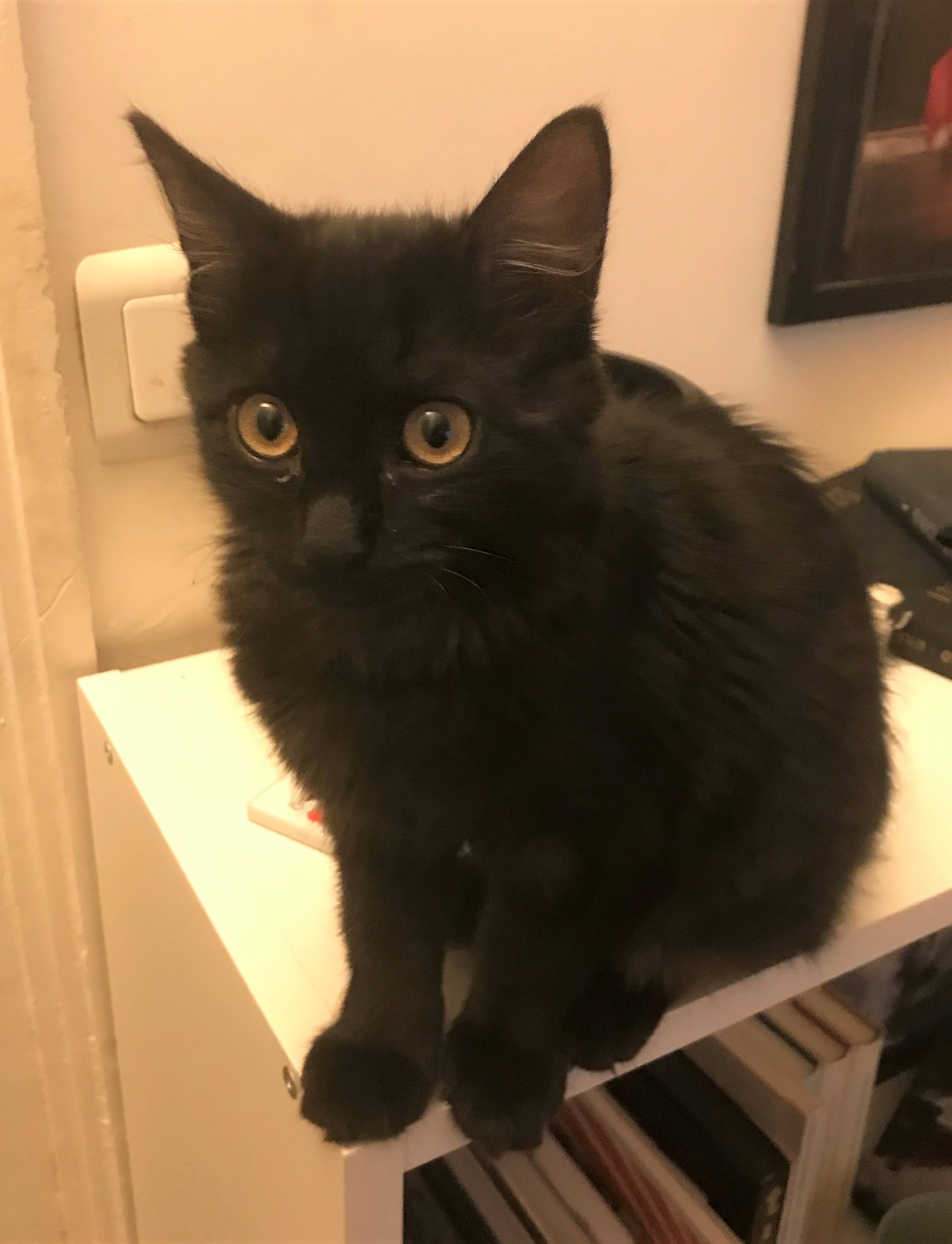 Caractéristiques physiques : Très gracieuse petite chatte à la belle robe noire. Testée FeLV/ FIV négatif, identifiée, vaccinée. Sera stérilisée vers l’âge de 6 mois.
