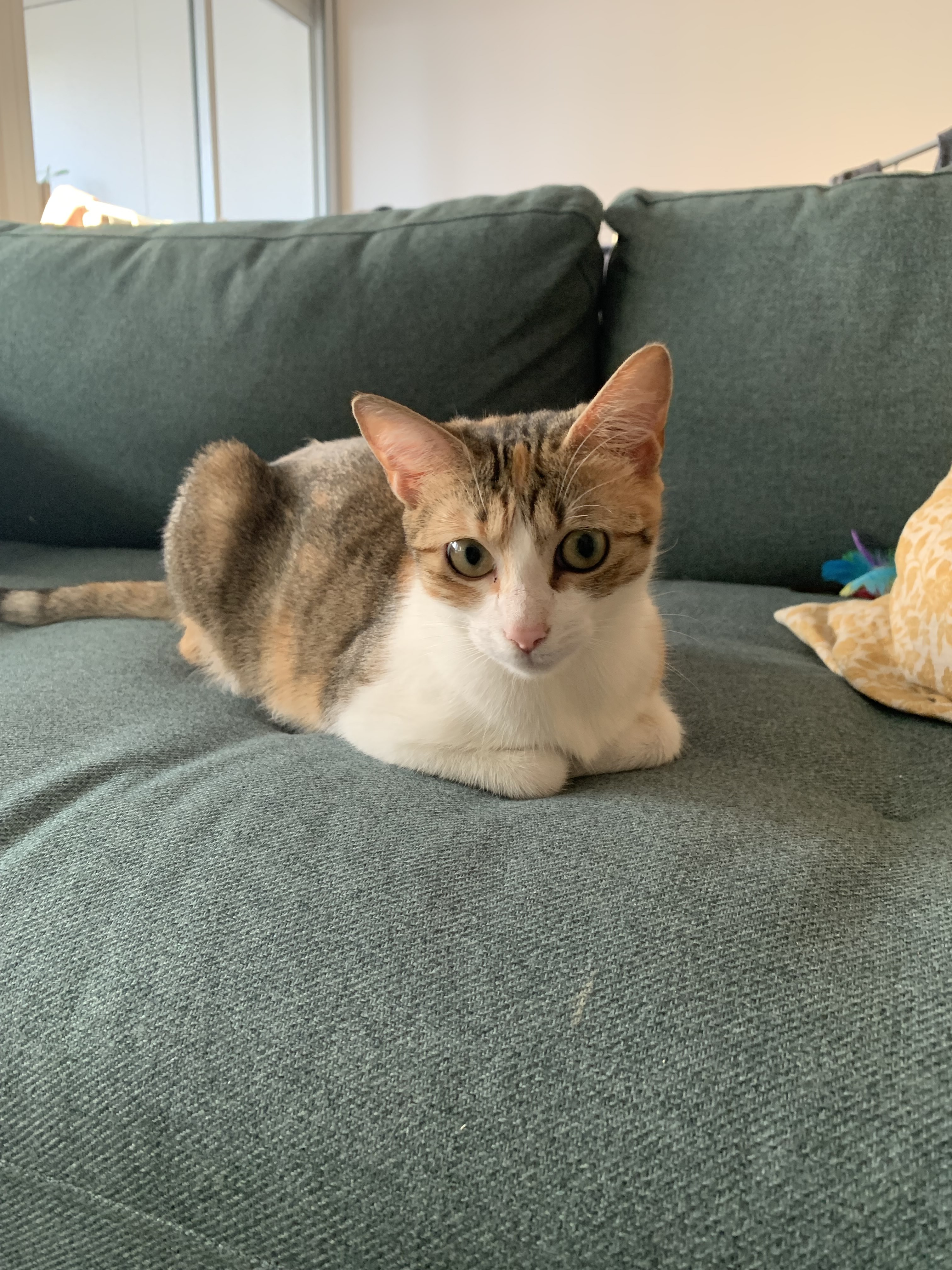 Dakota, est rapidement à l’aise et apprécie le contact des humains et particulièrement les caresses. Chatonne délicate qui aime les câlins sans être trop pot de colle. Facile à vivre. Elle est à l’aise dans son environnement tout en étant discrète. Elle aime jouer même si son endroit préféré reste le coussin de l’arbre à chat. Elle est très sociable. C’est une petite gourmande qui accoure quand elle entend le bruit des croquettes ou l’ouverture d’un yaourt. Elle ne griffe et ne mord jamais. Elle aime dormir avec sa famille d’accueil et auprès de sa soeur avec laquelle elle s’entend parfaitement.