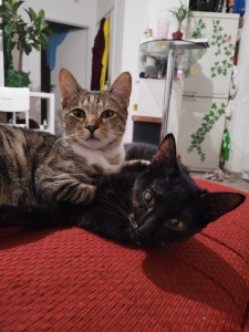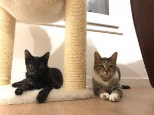 Caractéristiques physiques : Emma, chatonne écaille de tortue foncée – Angel, chaton tigré gris/blanc. Testés négatifs Fiv/FeLV, ils sont vaccinés et stérilisés
