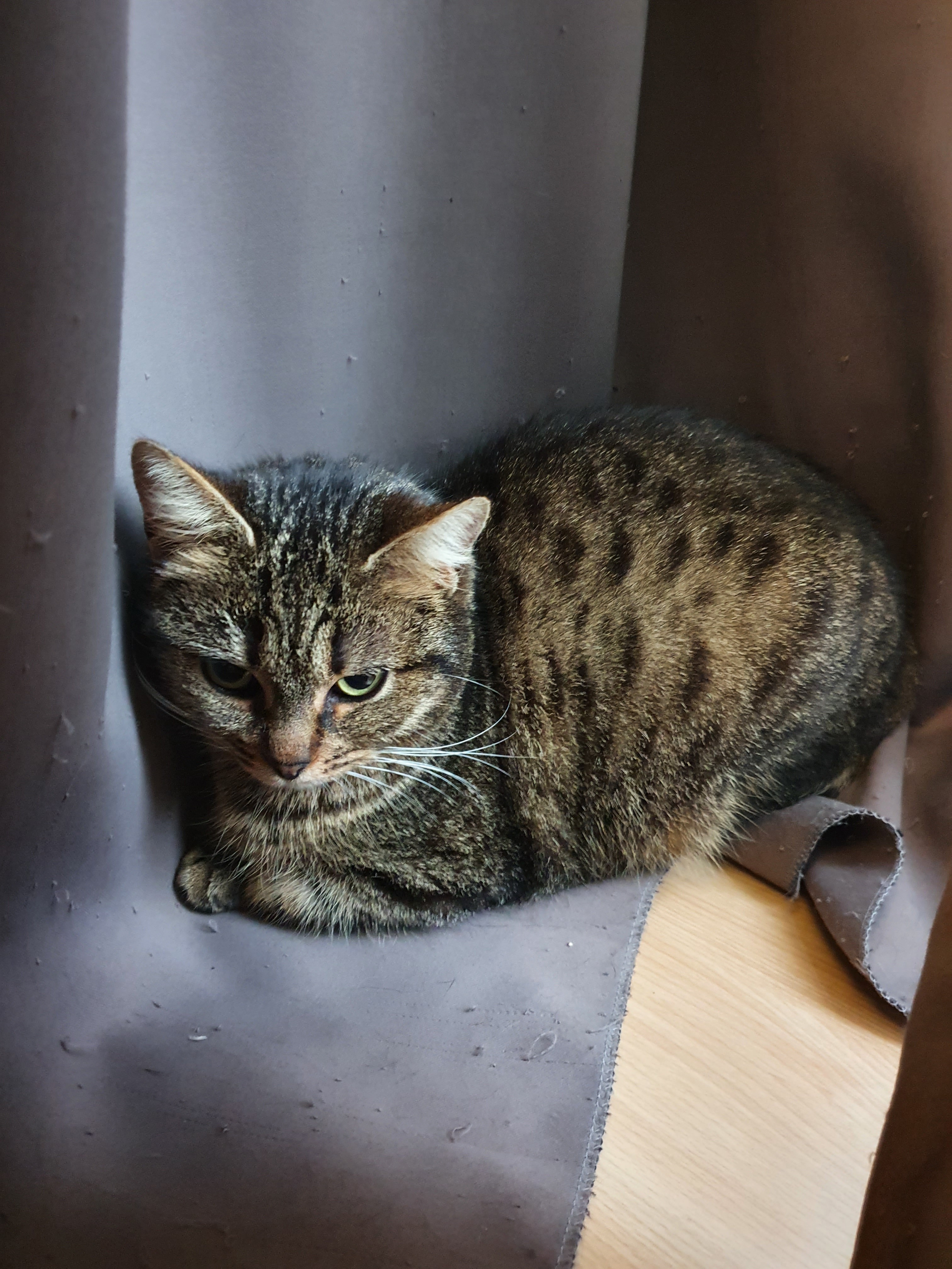 Placement idéal : foyer calme, patient, ayant déjà eu un chat, sans enfants en bas âge. Il est possible qu’elle appréciera la présence d’un autre chat calme pour la rassurer. Adoptée en avril 2021.