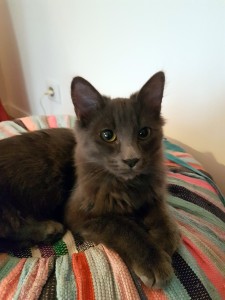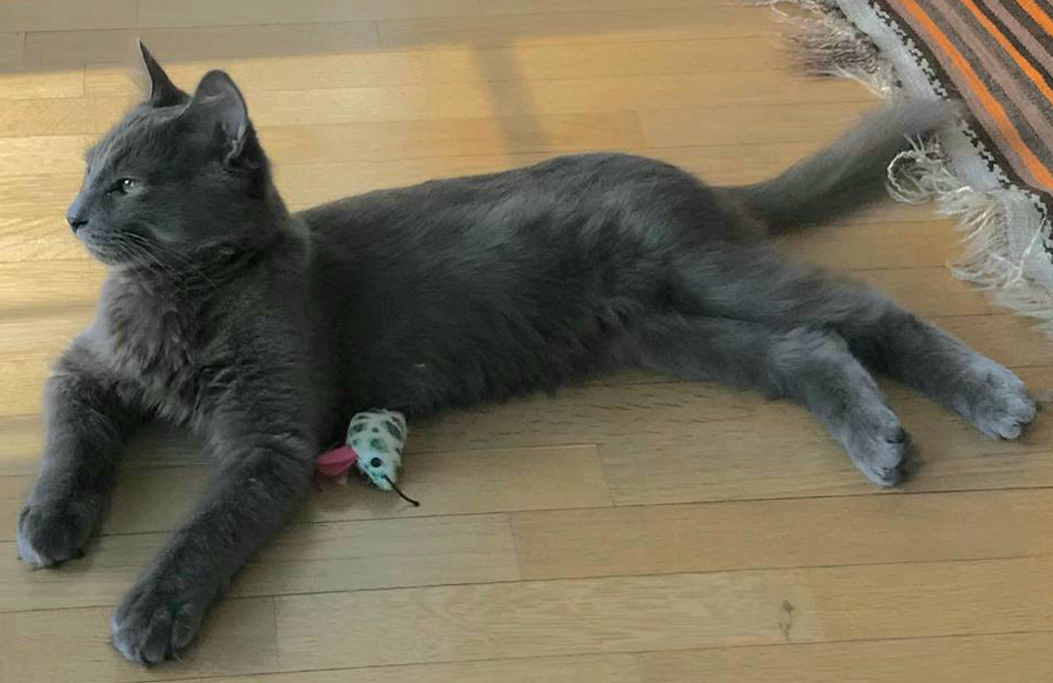 Caractéristiques physiques : beau chat gris bleu aux yeux or. Testé Felv/FIV négatif, vacciné et identifié par une puce électronique. Il sera stérilisé à l’âge de 6 mois par l’association.