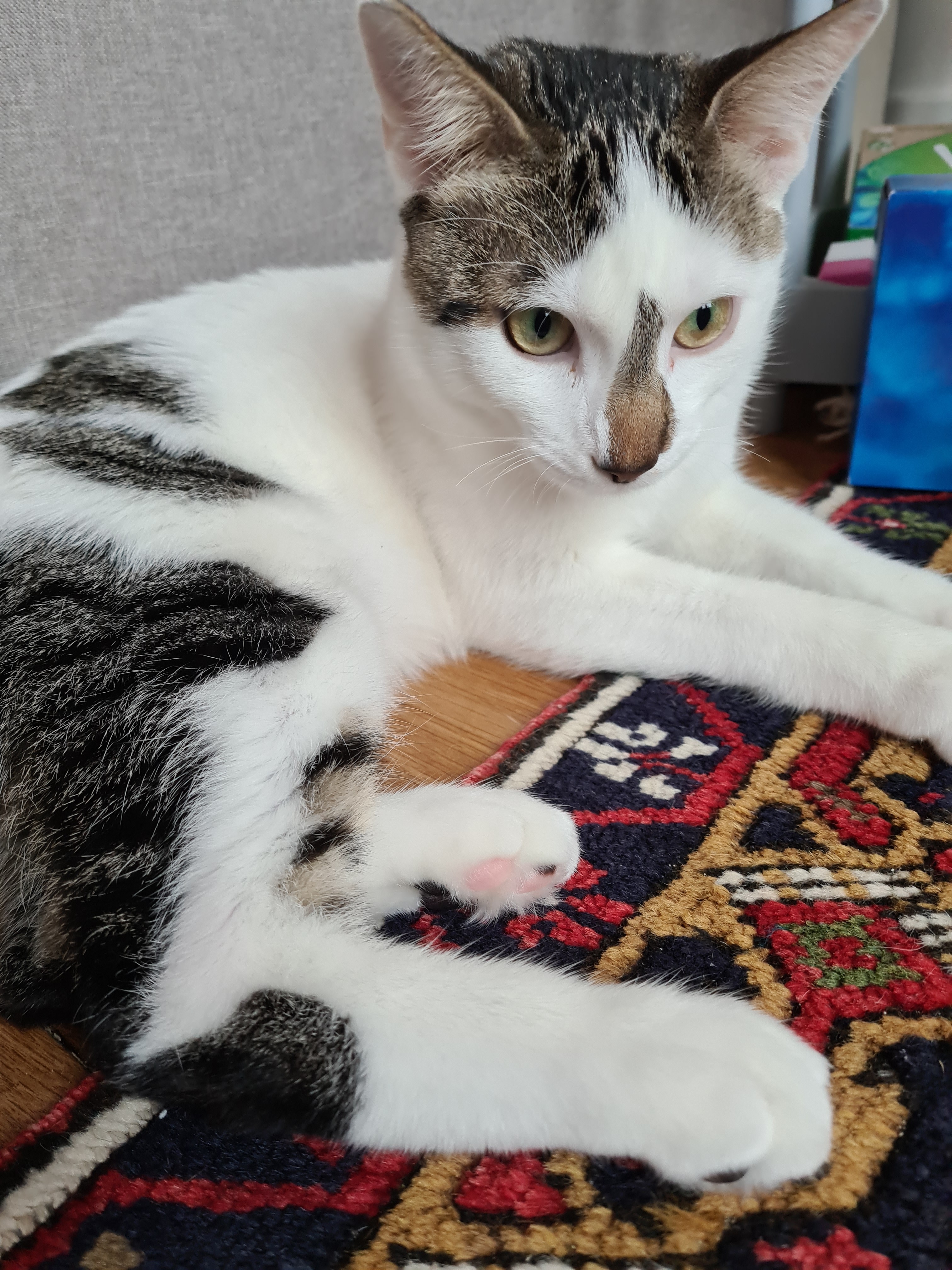 Caractère : Petit chat très affectueux et toujours collé à l’humain pour recevoir des caresses. Il sera toujours avec vous dans la même pièce et adorera dormir près de vous, même si dormir ou se cacher dans les placards lui plaît énormément. Il vous réveillera à heure fixe le matin de façon douce avec des câlins et bisous. Titus adore la compagnie pour s’amuser mais peut joueur seul aussi. Il sera toujours devant la porte d’entrée à vous attendre et fera la fête lorsqu’il vous retrouvera. Il n’aime pas être seul et se sent rassuré quand quelqu’un est là. Titus est un chat équilibré, tendre, docile, avec beaucoup de qualités. Un amour de chat !
