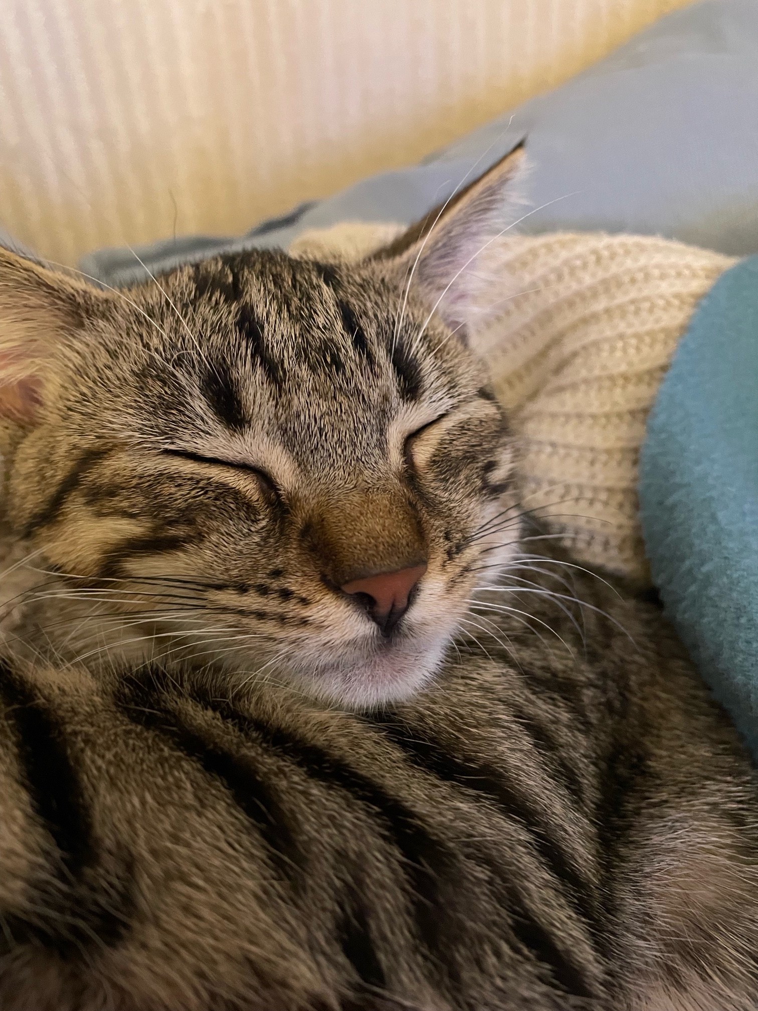 Une bonne gloutonne, elle demande tous les jours à la même heure sa pâtée, elle ne vous laissera pas l’oublier. Aussi, si vous aimez les yaourts, sachez que c’est fini de terminer les yaourts en toute tranquillité, elle adore les manger. Elle aime aussi le fromage, la viande… Tout ce qu’elle arrive à renifler. C’est une chatte très ouverte qui n’hésite pas à se rapprocher des inconnus ou à sortir dans la cage d’escalier pour découvrir le monde. Passionnée par les plantes, Zina aime jouer avec la terre (ben oui, c’est si drôle !), donc si vous en possédez, vous gagneriez à placer quelques petits galets dessus pour éviter les incidents. Comme beaucoup de félins d’intérieur, Zina a besoin d’un arbre à chat, elle fait d’ailleurs ses griffes dessus et un brin aussi sur le canapé, ça peut lui arriver , il suffira de lui dire fermement NON ! Seul petit défaut, Zina avait tendance à faire un pipi hors litière de temps en temps, mais c’est du passé !