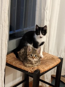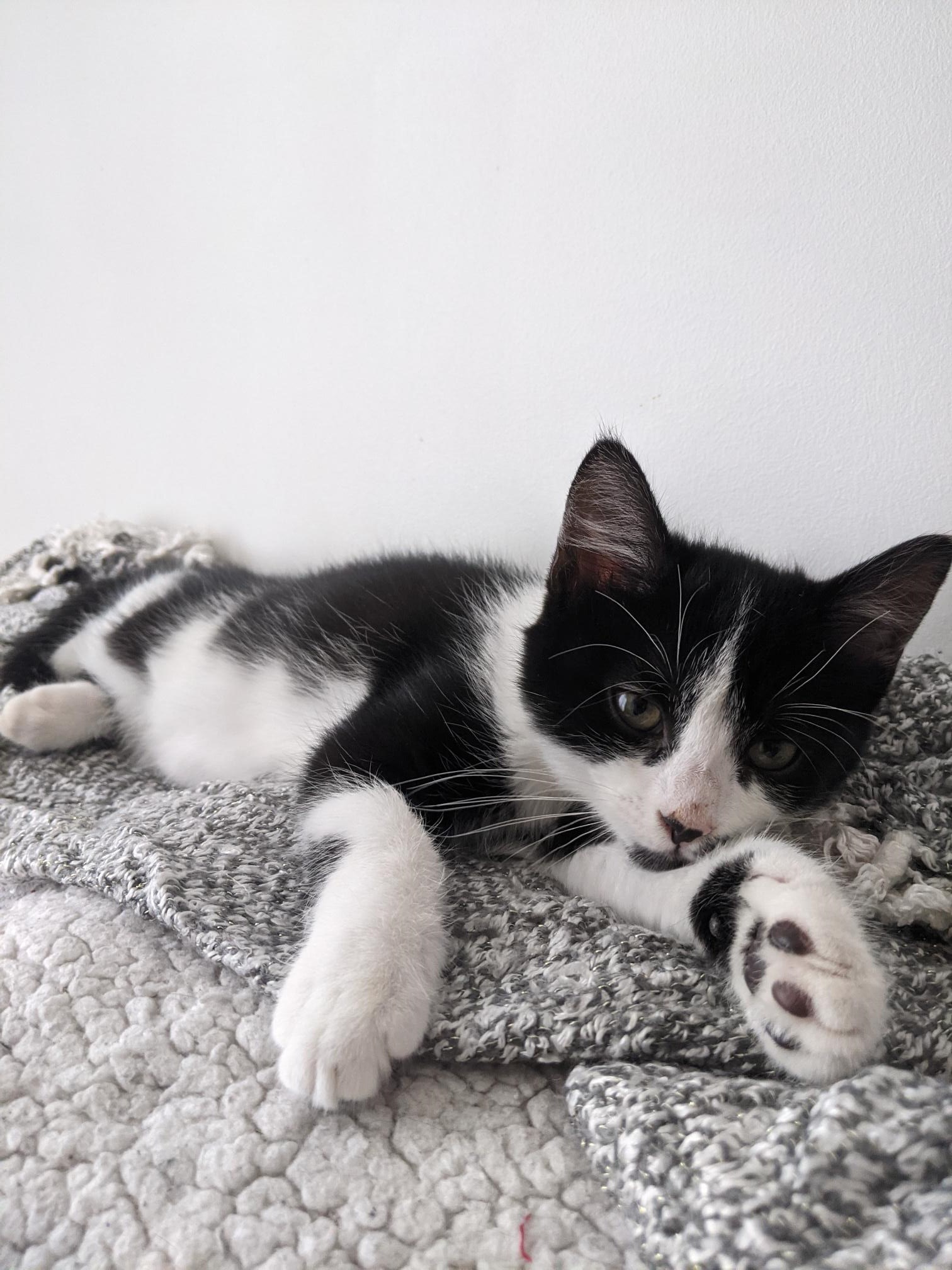 Caractéristiques physiques : Belle minette à la belle robe noire et blanche. Testée FeLV/ FIV négatif, identifiée, vaccination en cours. Sera stérilisée vers l’âge de 6 mois.
