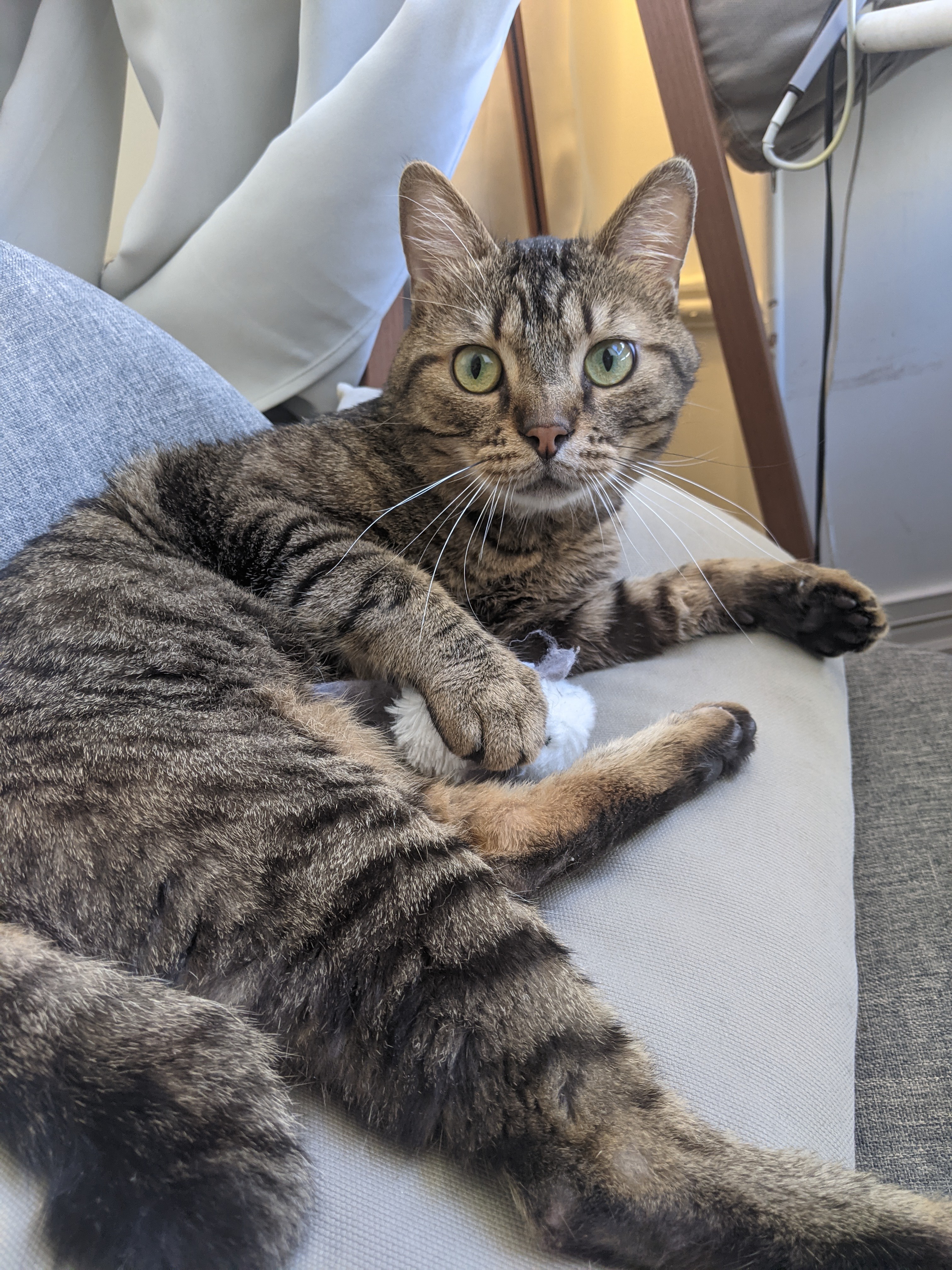 Chouchou est un vrai compagnon qui adore vous regarder avec amour dans vos différentes activités : il s’allongera sur votre bureau en télétravail, vous regardera faire la cuisine ou même faire du sport à la maison. Vous le retrouverez allongé sur votre chaise, sac à dos ou même puzzle ! S’il n’est pas avec vous, appelez-le et il viendra vous faire des câlins.