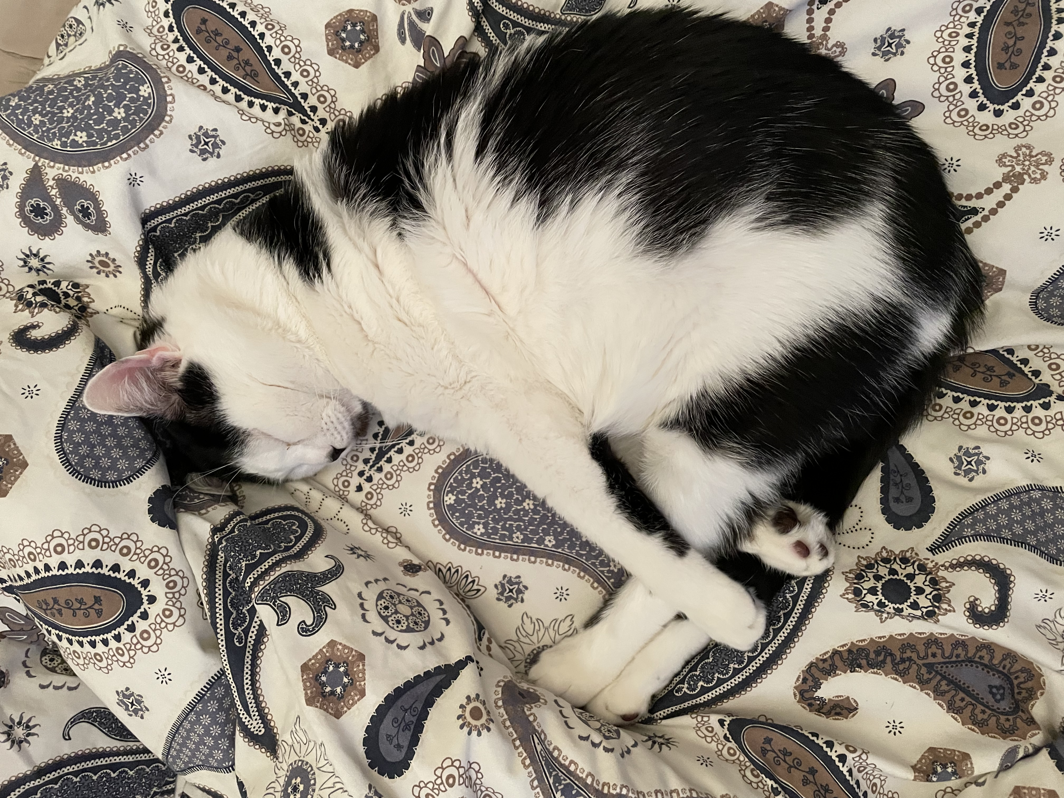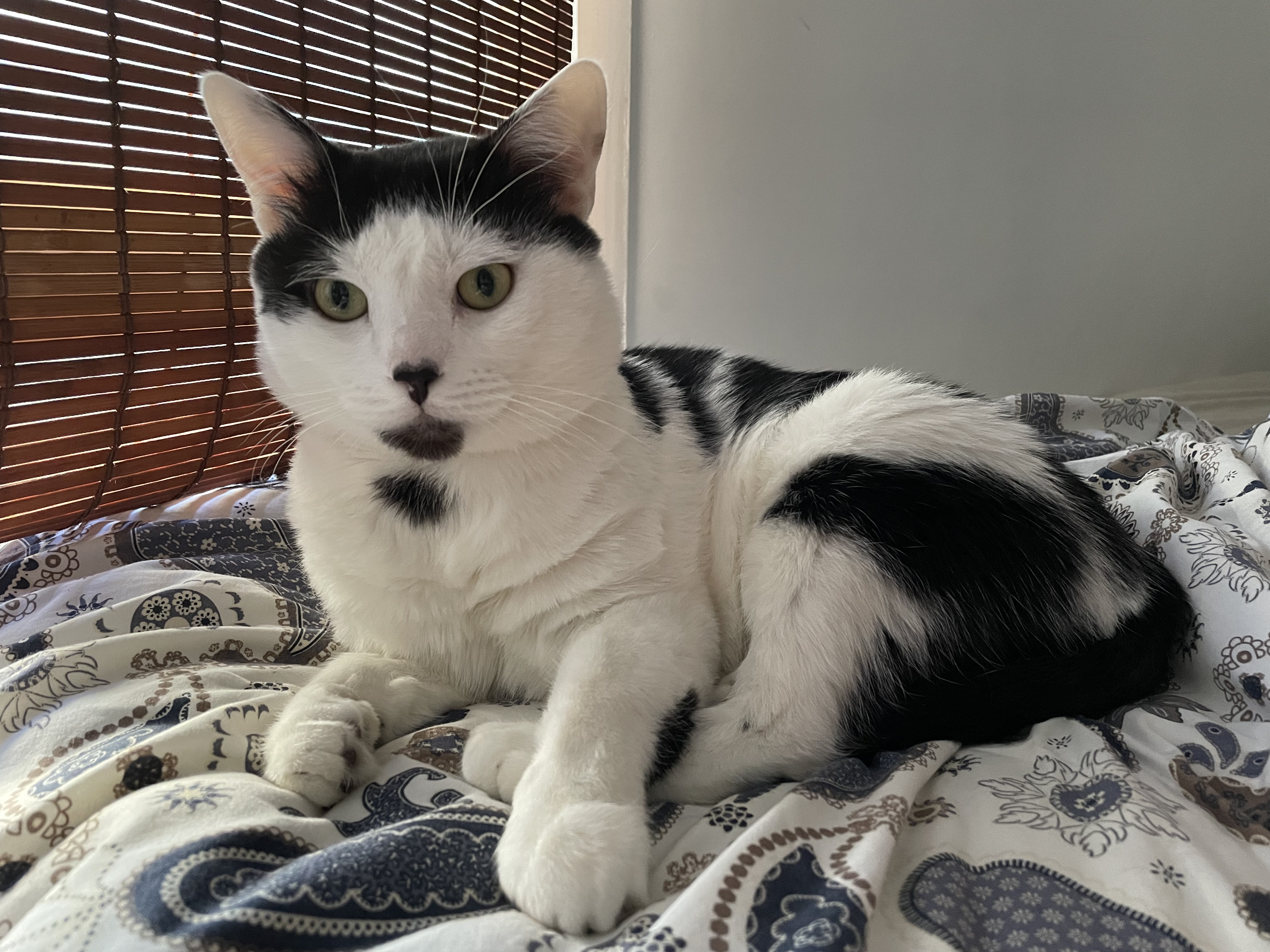 C’est un chat adorable qui demande beaucoup d’amour et ronronne énormément, mais qui a aussi besoin de cachettes pour des moments de calme et de tranquillité.