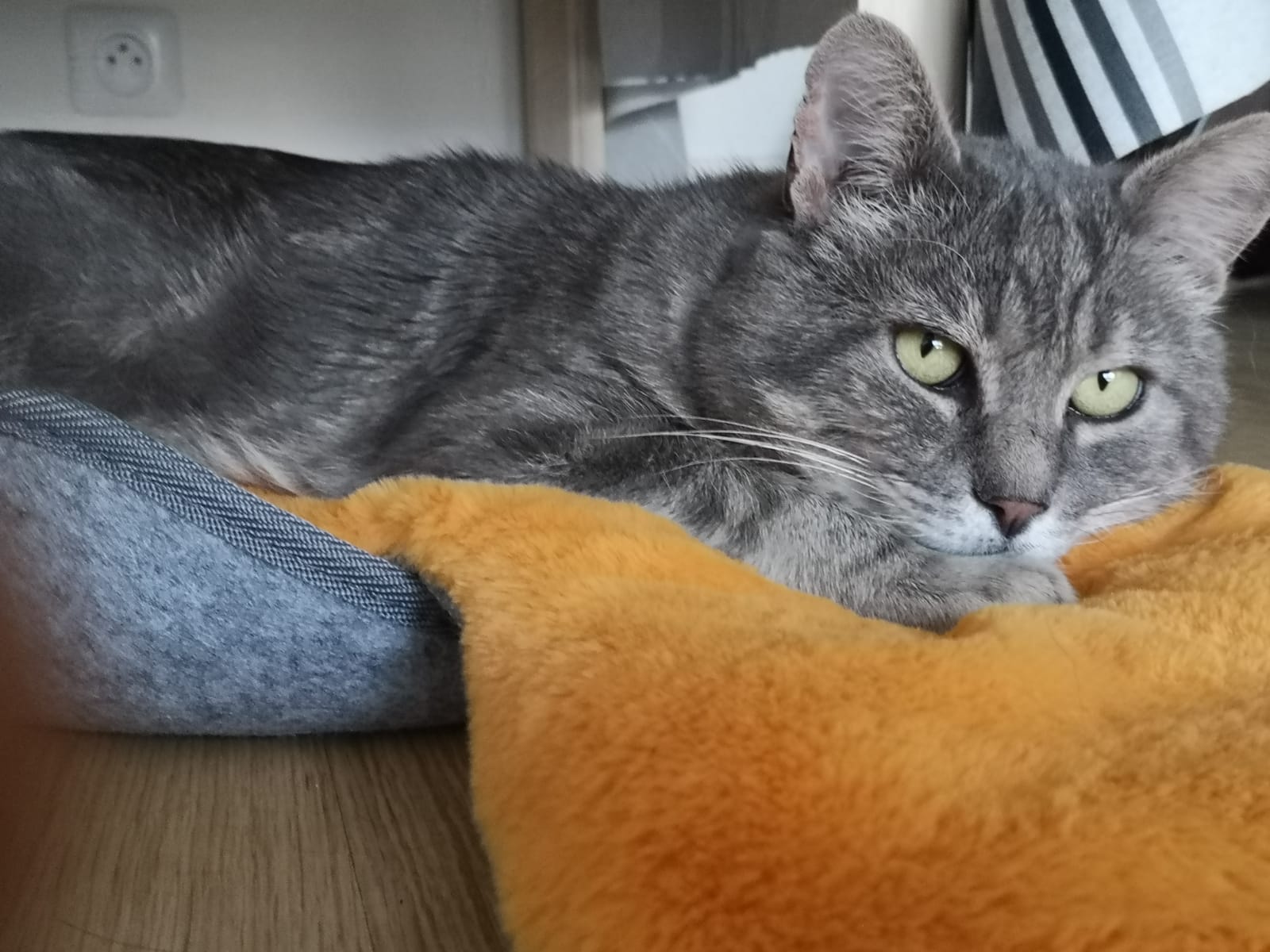 Caractère : Gris-gris est un chat timide au premier abord, il aura tendance à chercher une cachette en arrivant dans un nouvel endroit. Cela peut prendre un certain temps avant qu’il se sente tout à fait à l’aise. Mais une fois « chez lui », Gris-gris est très affectueux. Il est souvent en demande de câlins (et il sait très bien se faire comprendre !) et recherche la présence des humains. Bien sûr, il garde aussi son indépendance et il y a un moment pour tout. Il n’apprécie pas particulièrement d’être pris dans les bras, mais il n’est pas du tout agressif avec les humains.