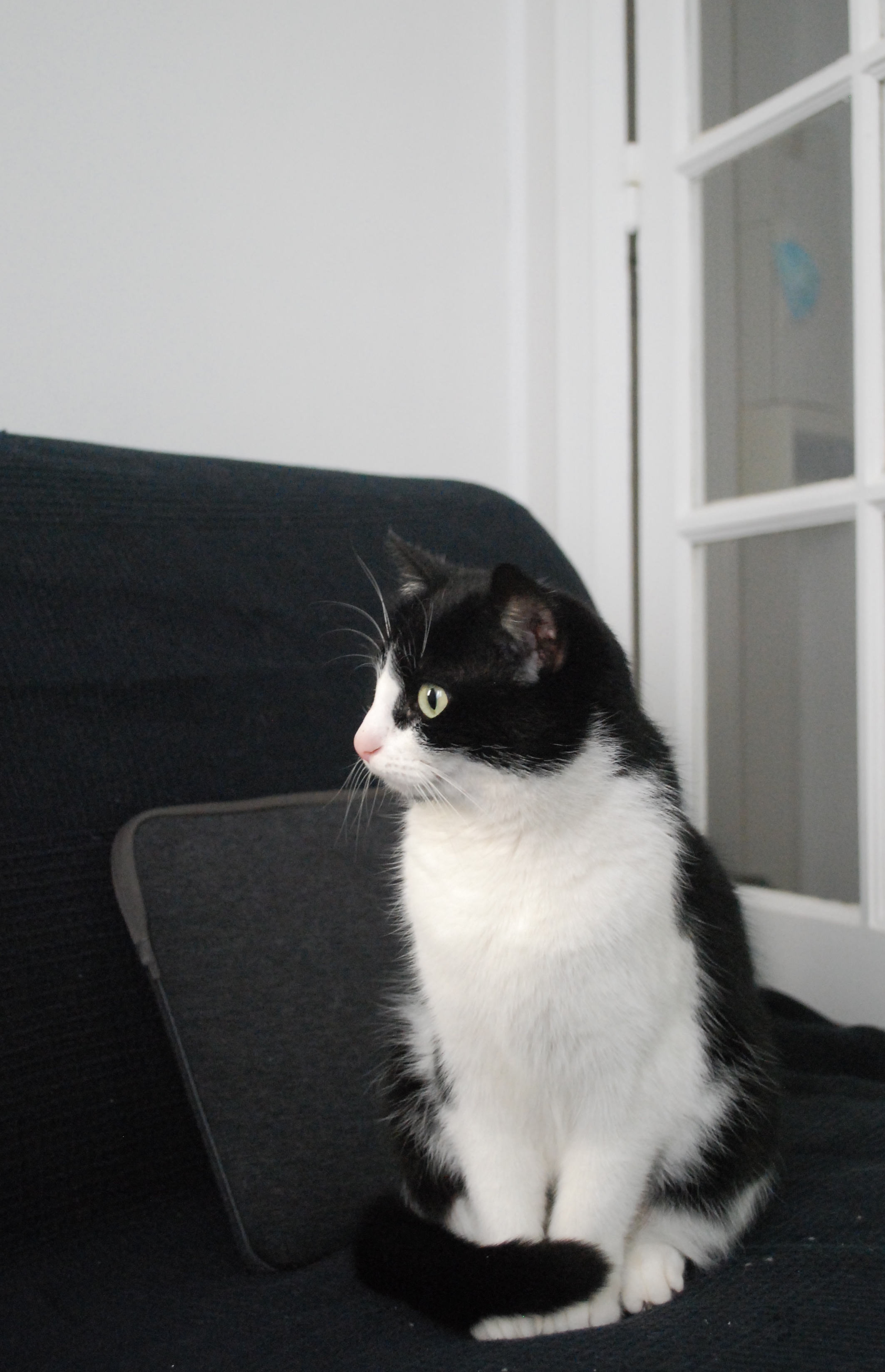 Caractéristiques physiques : pelage noir et blanc. Testée FeLV/FIV négatif, vaccinée, stérilisée et identifiée par une puce électronique.
