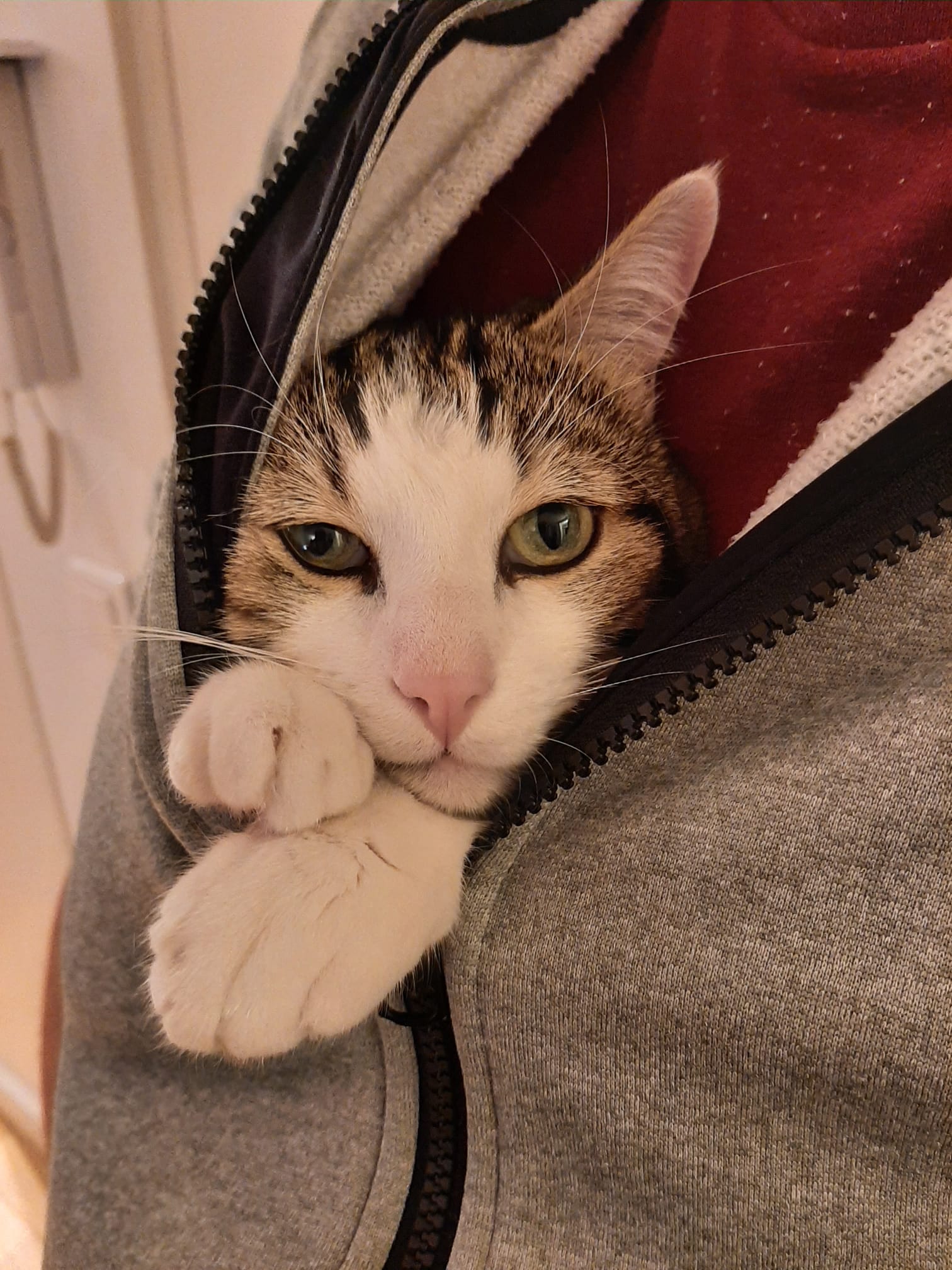 Placement idéal : dans un foyer sérieux et possédant un peu d’expérience avec les chats, avec des personnes assez présentes et un petit extérieur bien sécurisé qui sera pour lui un plus. Adopté en avril 2022.