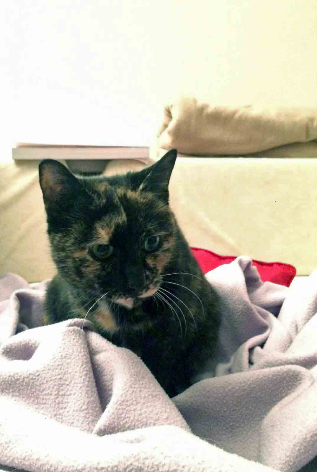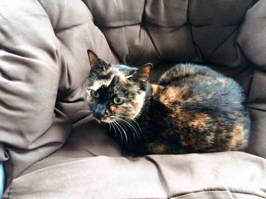 Caractéristiques physiques : jolie robe écaille de tortue. Testée FeLV/FIV négatif, vaccinée, stérilisée et identifiée par une puce électronique.