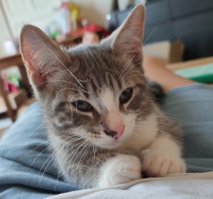 Caractéristiques physiques : belle minette grise et blanche.