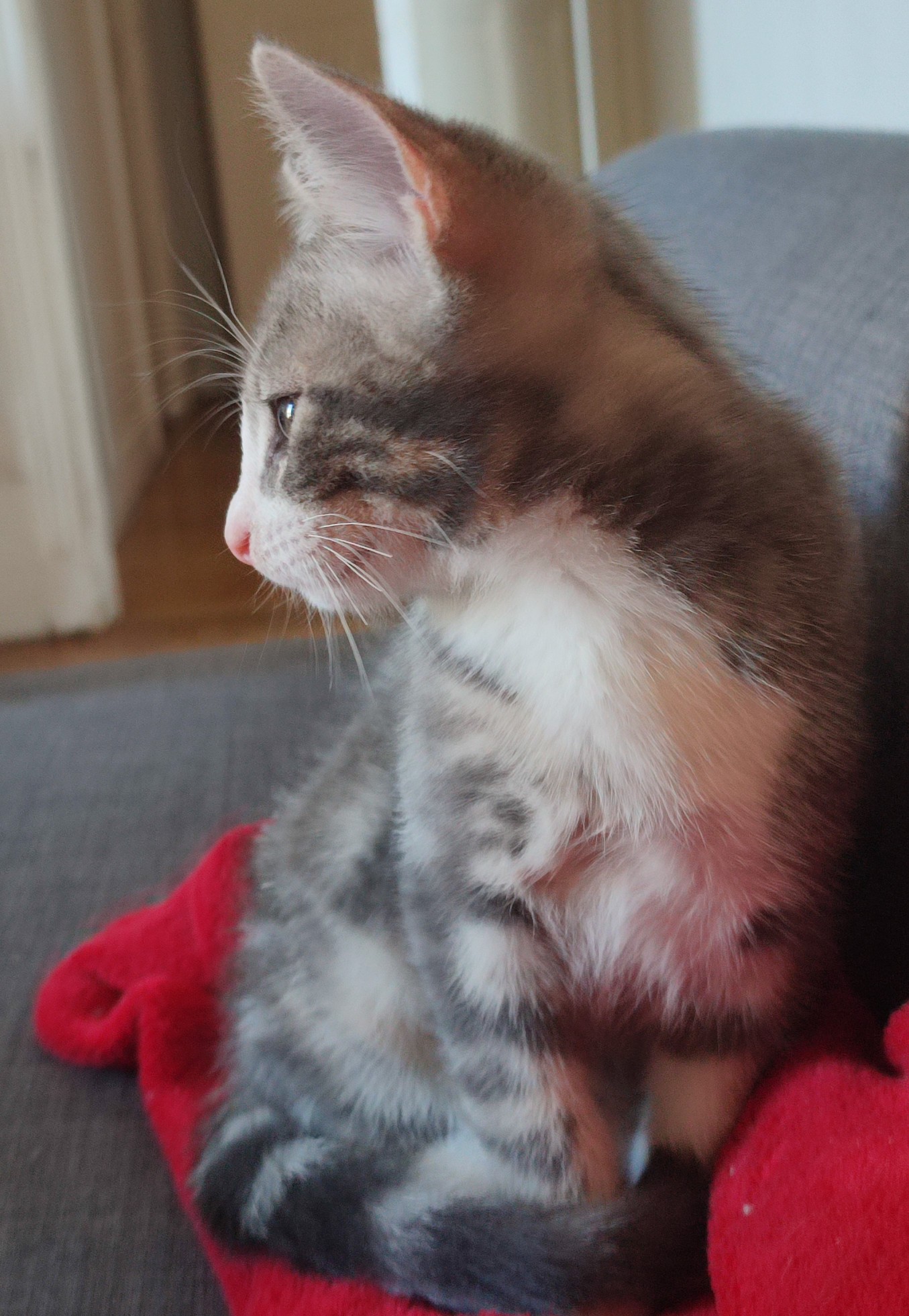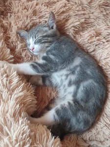 Testée FeLV/ FIV négatif, identifiée, vaccination en cours. Sera stérilisée vers l’âge de 6 mois.