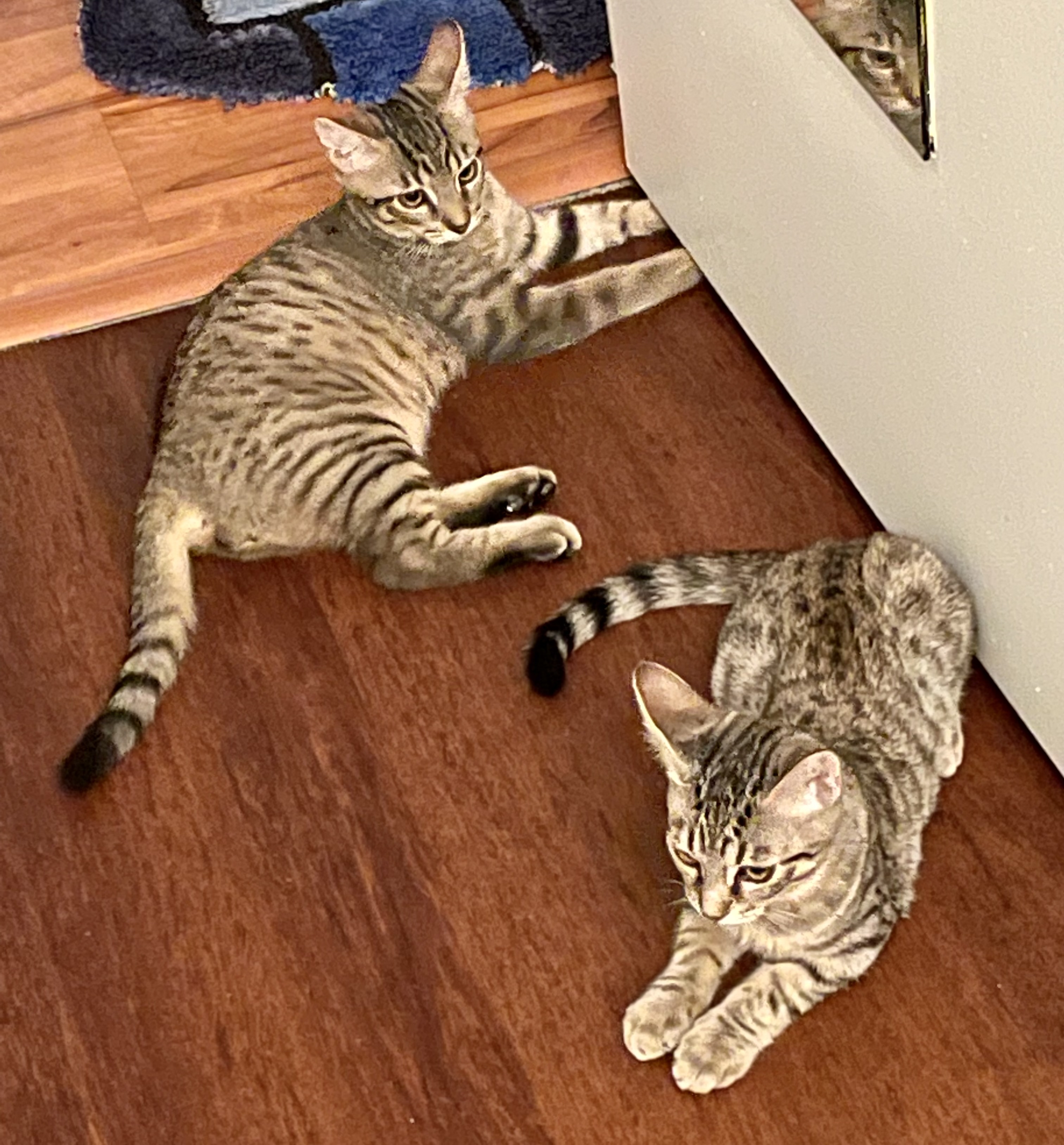 Ils ont tout de suite assimilé la litière et adorent les griffoirs. Ils ne font pas de bêtise. Tous les deux s’entendent aussi très bien avec les chats adultes de la maison.