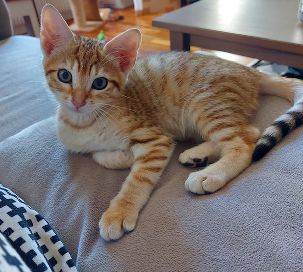 Caractère : du haut de ses trois mois Nova est une petite boule d’énergie qui saute partout et qui est passionnée par les jeux à base de plumes et de petits serpentins ce qui promet de grands moments de parties de chasse car elle a besoin, la demoiselle de beaucoup jouer pour bien grandir et se mettre en confiance dans son nouvel environnement.
