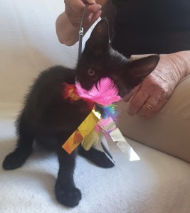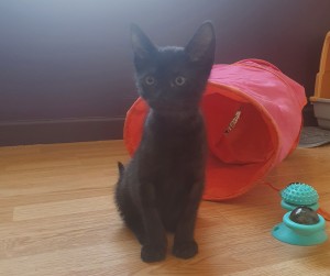 Il aime notre compagnie et nous le montre en venant chercher des caresses. Un amour de chaton !