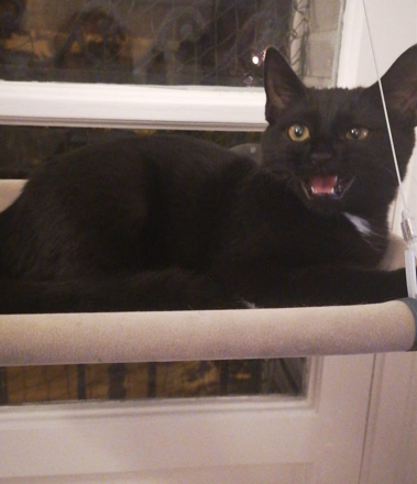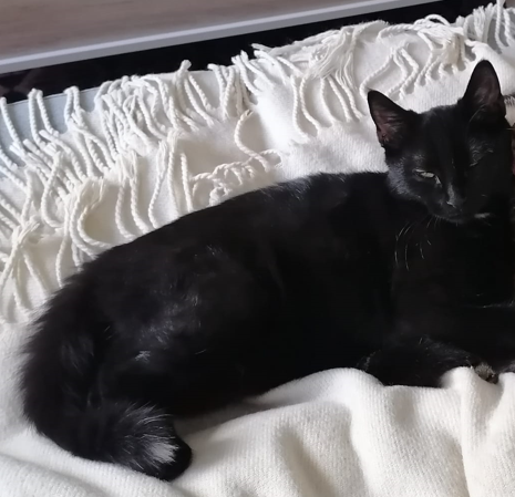 Caractère : C’est une petite minette sympathique, véritable panthère noire (son pelage est très doux), très gourmande, un peu craintive mais dynamique et câline à ses heures.