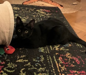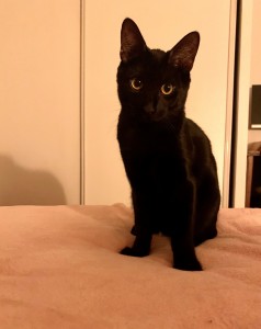 Caractère : Shadow est un petit chat tout noir et mignon, et très gourmand.