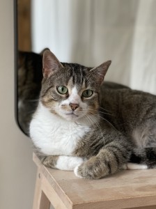 Caractéristiques physiques : jolie robe Tabby et blanc, beaux yeux verts. Testée FeLV/FIV négatif, vaccinée, stérilisée et identifiée par une puce électronique.