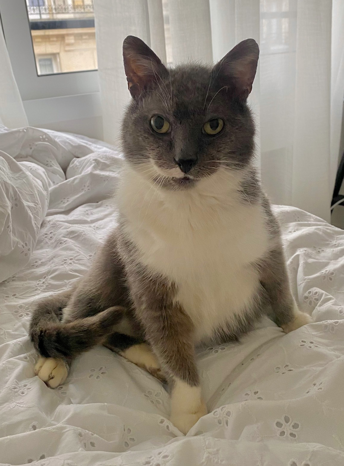 Caractéristiques physiques: Robe grise et blanche Testé Felv/FIV négatif, vacciné, stérilisé et identifié par une puce électronique.