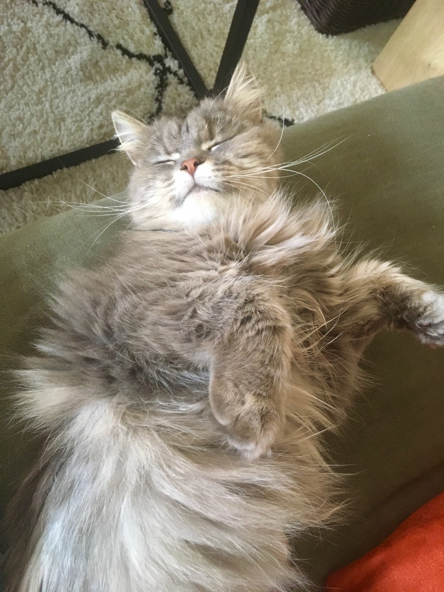 Le soir venu, son rituel consiste à se poster sur son arbre à chat près de la fenêtre pour observer tout ce qu’il se passe à l’extérieur. Très curieuse, il faudra donc bien sécuriser les accès à l’extérieur pour éviter une cascade malencontreuse ! La nuit, Daphné aime se blottir contre les jambes de ses humains ou, selon la température ambiante, s’étaler de tout son long !