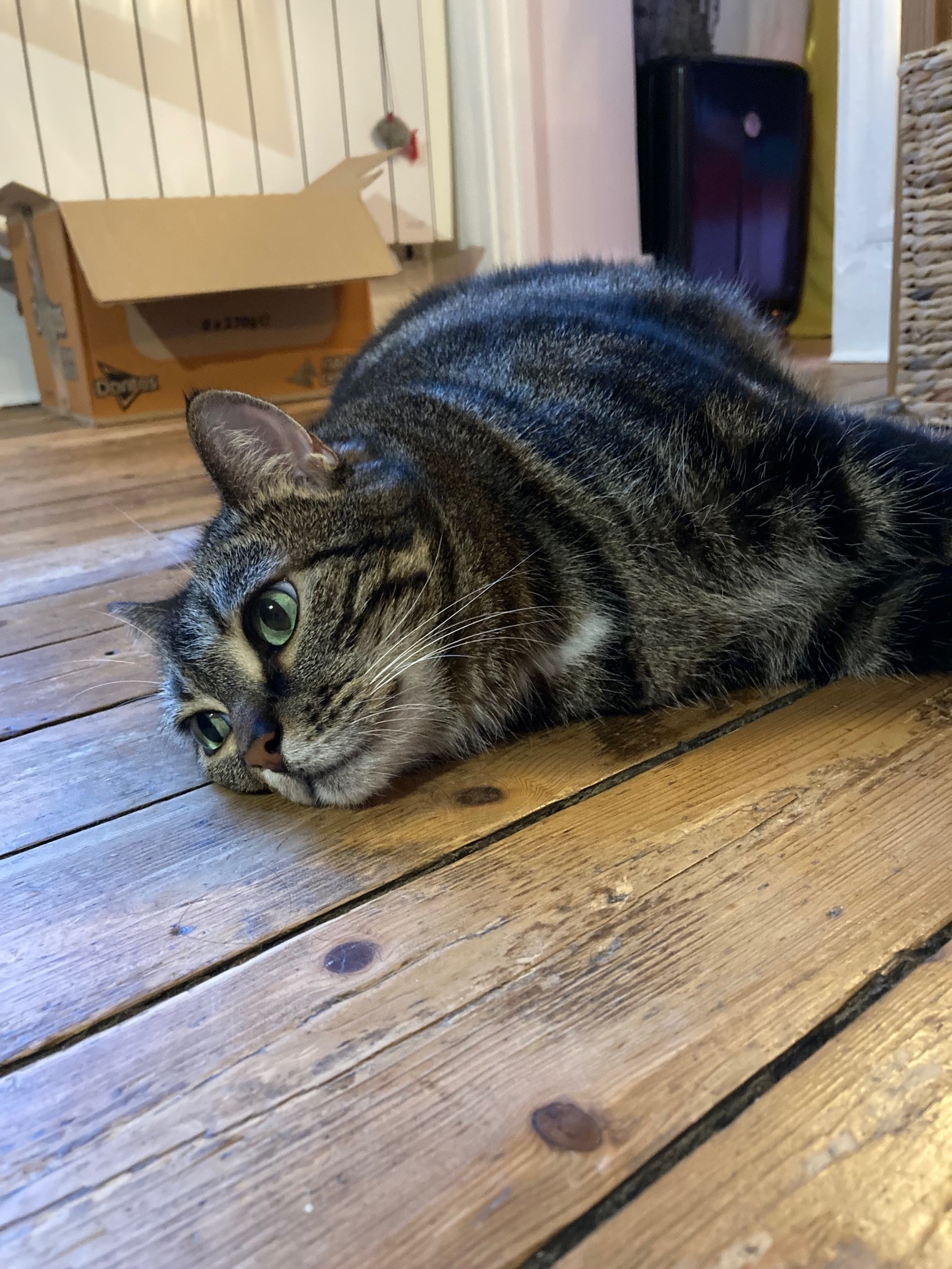 Elle est calme, aime dormir, cependant, elle n’a rien contre un peu de jeux (une simple ficelle fait son bonheur) et a ses petits moments de folie !