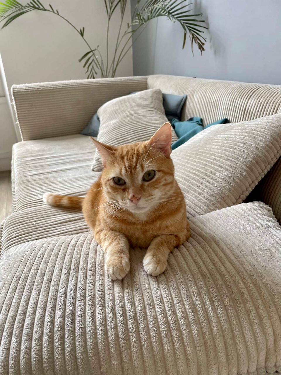 Caractère : Pomi est un chat un peu timide au départ car il n’aime pas trop changer d’environnement, il mettra donc un petit peu de temps à s’habituer à son nouveau foyer avant de devenir le parfait colocataire. Il n’est pas agressif et ne montre jamais les griffes. Il ronronne au moins une fois par jour et se montre très câlin. Il dort là où on lui dit de dormir. Il miaule un petit peu, mais pas trop. Il mange des croquettes et ne réclame pas tout le temps sa pâtée. Enfin, il devient même un petit peu joueur à la nuit tombée. Ce chat frôle la perfection, il a juste un canal lacrymal un peu bouché, ce qui lui cause une saleté au coin de l’œil de temps en temps. Nous recommandons plutôt une famille calme pour ce chat qui vous fera évidemment craquer !