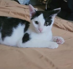 Placement idéal : dans une famille avec suffisamment de présence, idéalement avec un autre chat. Adopté en juillet 2023.