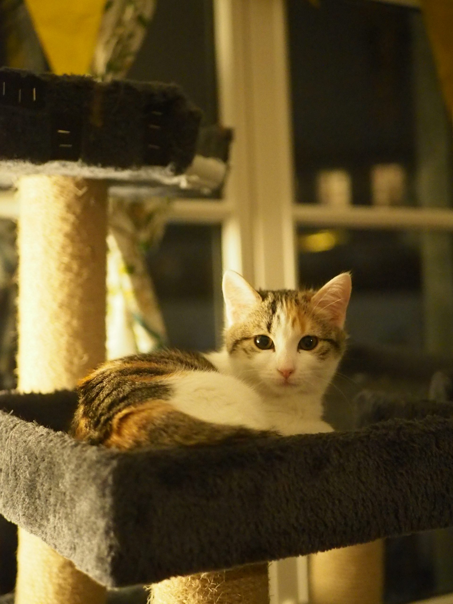 Caractère : Après des débuts très timides dans sa famille d’accueil, Biboune apprend peu à peu à faire confiance à l’humain. C’est une chatonne calme qui ne va pas spontanément vers l’humain, mais qui aime beaucoup les caresses dans les moments de repos. Elle vient voler les caresses de ses sœurs et ronronne facilement.