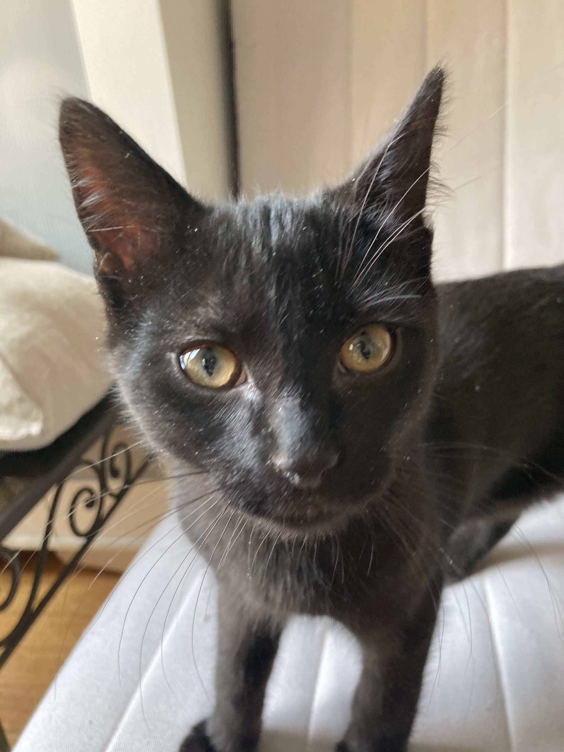 Caractéristiques physiques : Joli petit chaton au pelage noir, vacciné et identifié par une puce électronique. Sera stérilisé à l’âge de 6 mois.