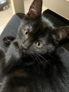 Testée FeLV/ FIV négatif, identifiée, vaccination en cours. Sera stérilisée vers l’âge de 6 mois.