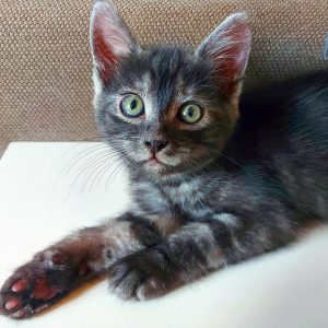 Placement idéal : avec des personnes aimantes et attentionnées, vivant dans une atmosphère plutôt calme pas d’enfants en bas âges mais impérativement avec un autre chat ou chaton.