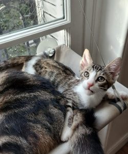 Câline aussi elle adore venir ronronner auprès de sa famille d’accueil et passer des moments blottie à côté de leur chatte Street qu’elle considère un peu comme sa maman.
