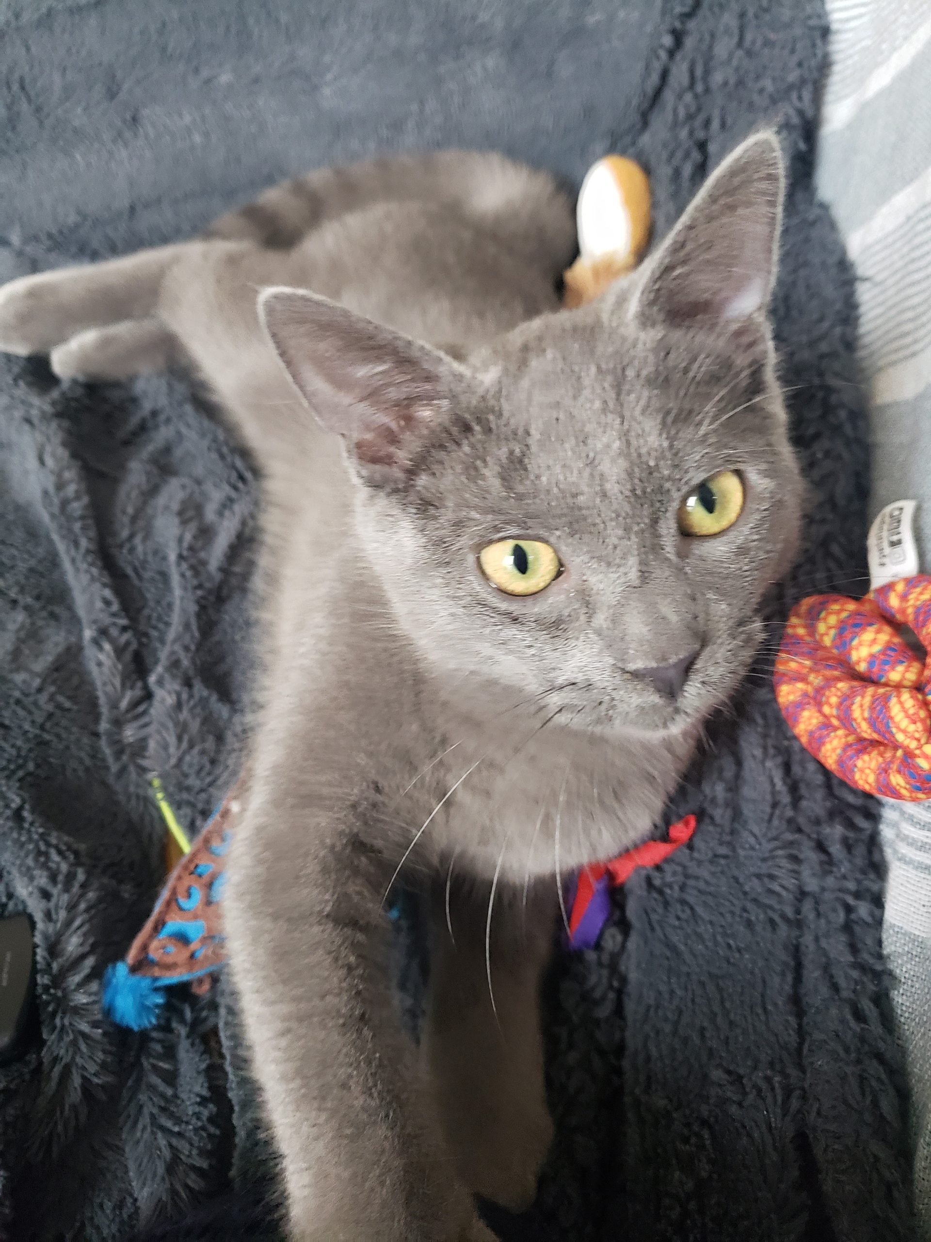 Caractère : Luigi est un chaton plein de vie qui joue avec son frère, avec ses petites souris, sa canne à pêche et fait sa sieste dans son hamac ou dans son panier. Il adore également les grattouilles. Il est aussi très curieux car il vous suivra dans vos activités. Il sera timide au début, le temps de s’habituer à vous et son nouvel environnement. Ensuite, ce sera un vrai pot de colle qui sera sur vos genoux si vous faites du télétravail et dormira contre vous la nuit. C’est un chaton propre et bien dans ses pattes. Il fera ses griffes sur le griffoir en carton et viendra aussi se reposer avec vous sur le canapé. Il est très autonome et se laisse manipuler facilement. Une boule de poil adorable et très affectueuse.