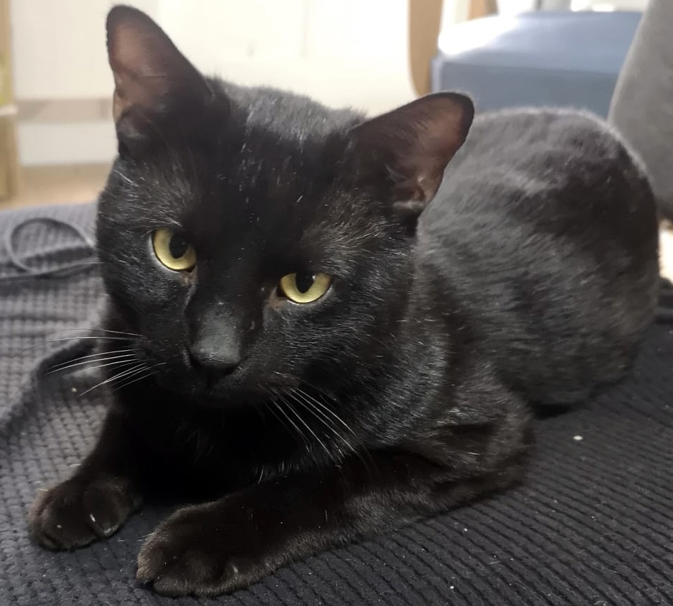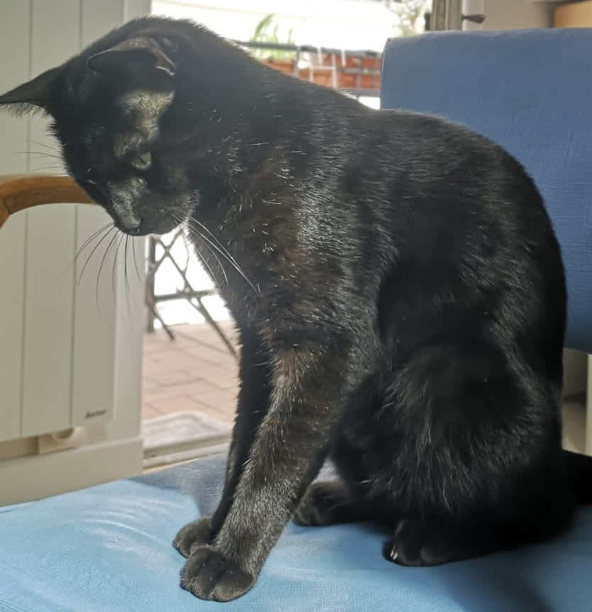 Caractéristiques physiques: Très beau chat noir avec quelques petits poils blancs au niveau du cou .Testé Felv /FIV négatif, vacciné, stérilisé et identifié par une puce électronique.