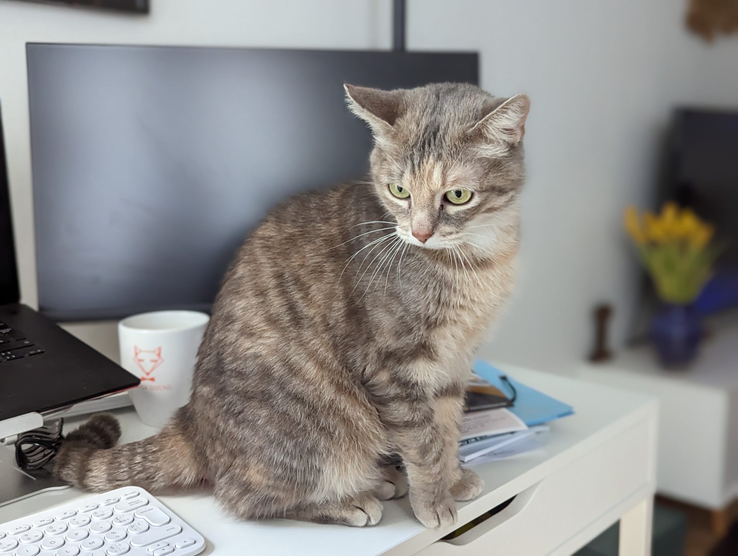 Minette n’aime pas poser pour être prise en photo, elle préfère venir vers l’appareil pour se frotter et recevoir quelques câlins. Si la main est trop haute, elle n’hésite pas à faire un petit bond pour venir les chercher elle-même ! En somme, elle est une chatte facile à vivre qui a plein d’amour à donner et qui cherche une famille qui lui en donnera également.
