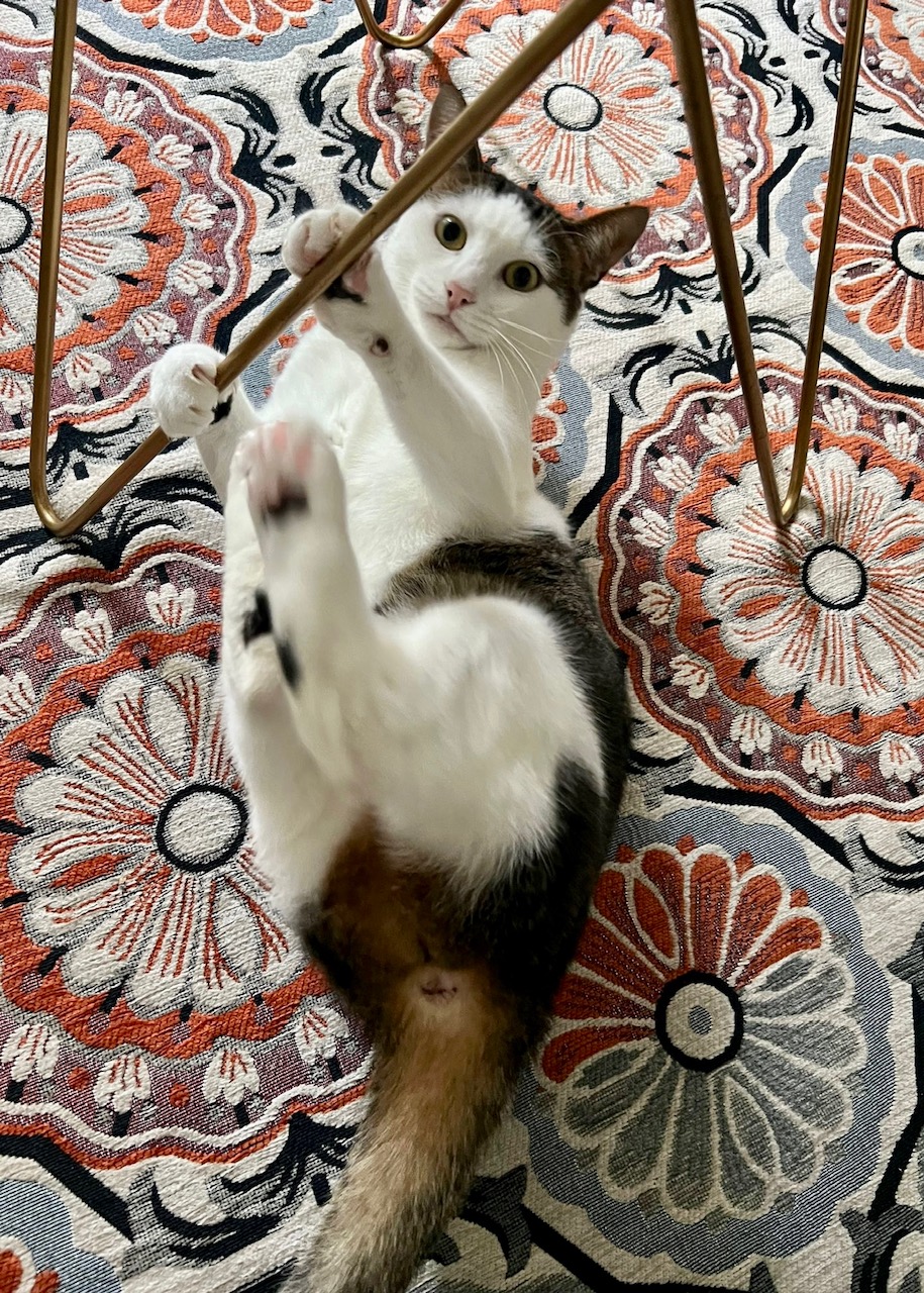 Elle utilise sans problème la litière et a toujours été très propre. Elle aime bien jouer, mais apprécie surtout les bains de soleil à côté d’une fenêtre.