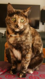 Caractéristiques physiques : beau pelage écaille de tortue; Test FeLV/FIV négatif. Vaccinée, stérilisée et identifiée par une puce électronique.