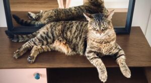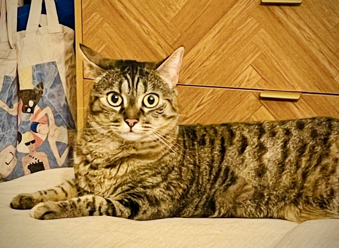 Caractéristiques physiques : belle chatte au pelage tigré, beaux yeux verts.
