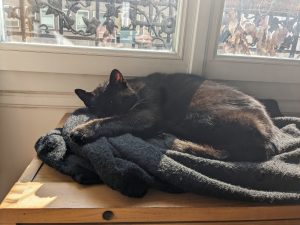 Caractère : Antonin a connu une vie difficile pendant plusieurs années. Il s’est très bien adapté à la vie en intérieur et n’a désormais plus peur des mouvements des humains proches de lui. La confiance venue, il sera toujours prêt à recevoir des câlins et à faire la sieste près de vous à longueur de journée ou quand vous travaillez sur l’ordinateur. Il est très proche de l’humain et sait se faire comprendre par de petits miaulements. Il est joueur quand on le sollicile et c’est un chasseur de boules de papier hors pair ! Il adore surveiller et regarder par la fenêtre les oiseaux. C’est un chat affectueux et câlin.