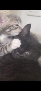 Caractéristiques physiques : Chatonne pelage gris et blanc. Testée négative Fiv/FeLV, elle est vaccinée et sera stérilisée à l’âge de 6 mois par l’association.