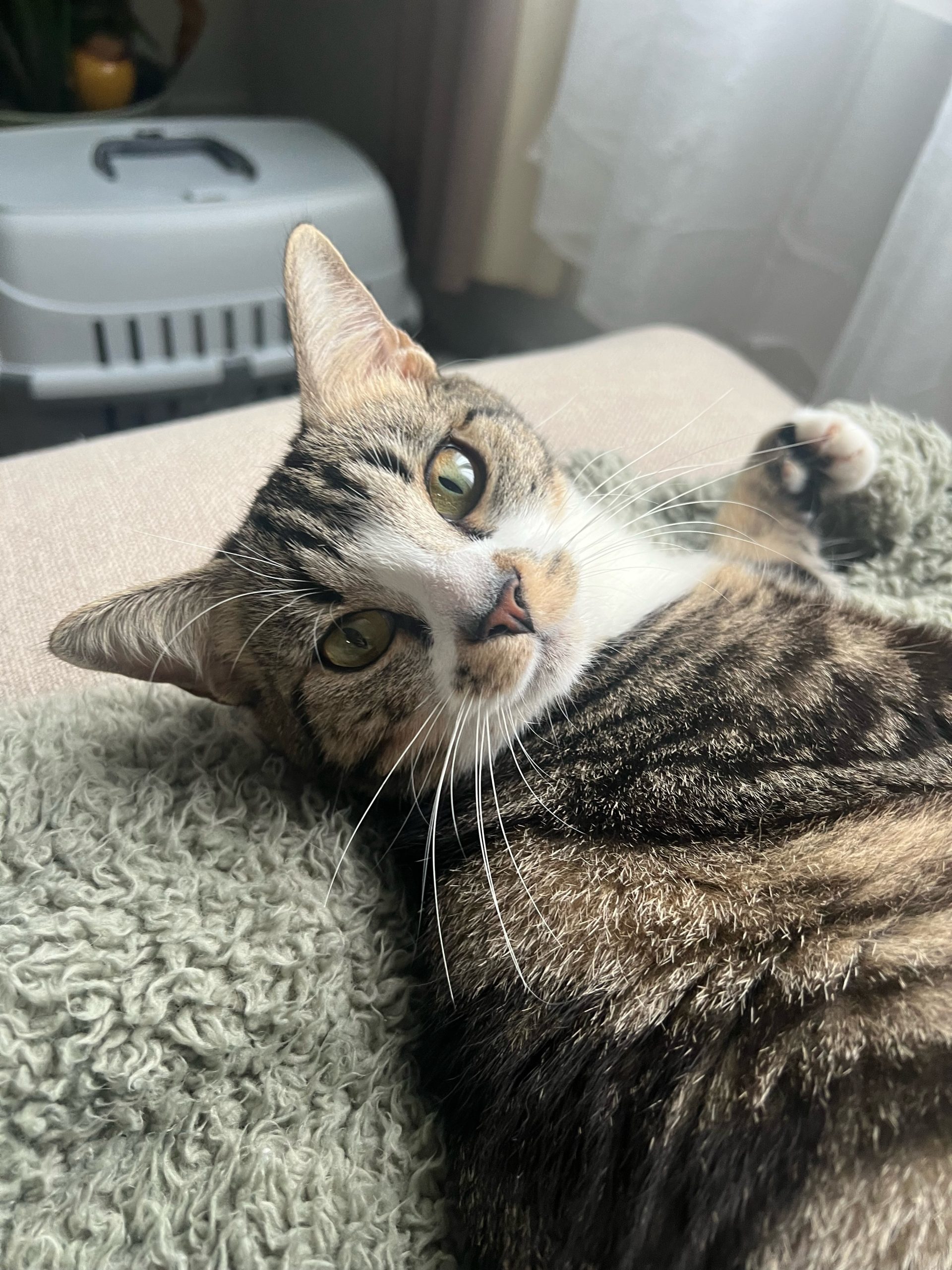 Placement idéal : une famille aimante et disponible, car elle adore le contact humain et a besoin de suffisamment de présence. Adoptée en novembre 2024.